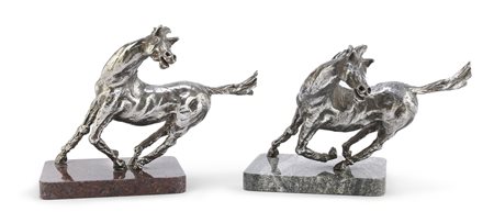 COPPIA DI CAVALLI IN BRONZO ARGENTATO