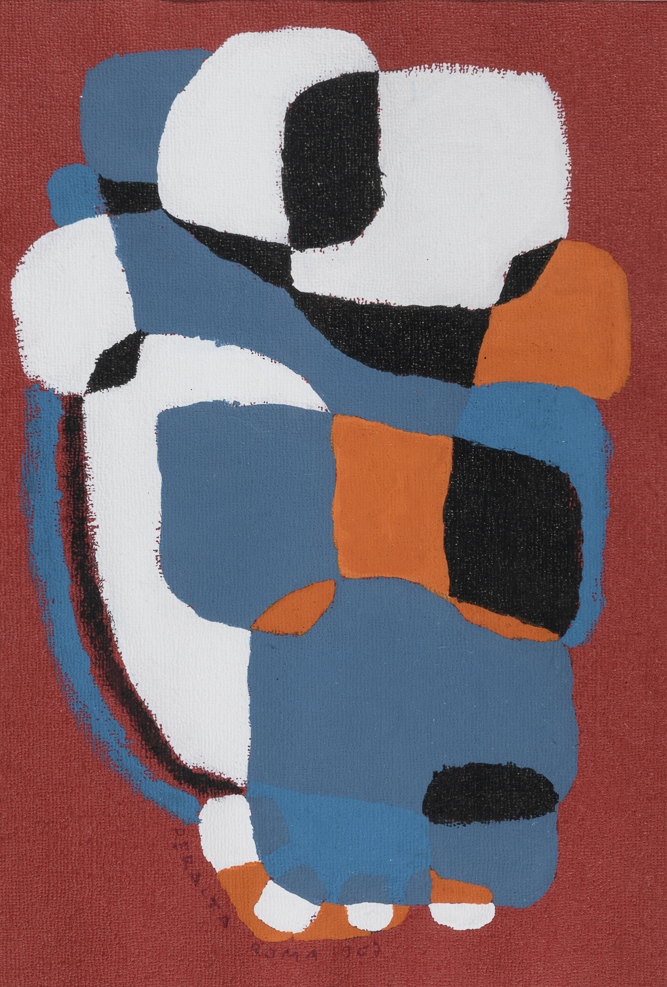 Tempera su carta a fondo rosso, cm. 34 x 23