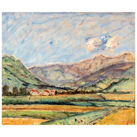 "Paesaggio di montagna", olio su tela, firmato in basso a destra, entro cornice