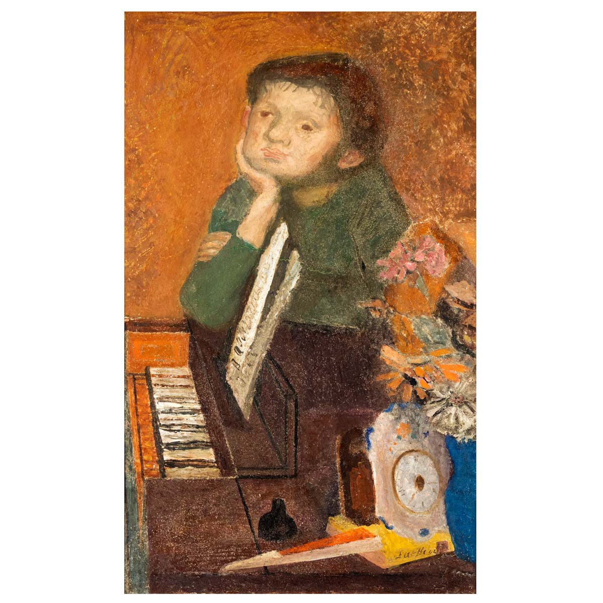 "Ragazzo con organetto", 1944, affresco su masonite, firmato e datato in basso a destra, entro cornice