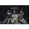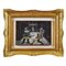 "Truffaldino e il capitano", 1977, olio su cartone sabbiato e intelato, firmato in basso a destra, entro cornice.