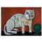 "Gatto", 1957, tecnica mista su carta applicata su tela, firmato in basso a destra, entro cornice