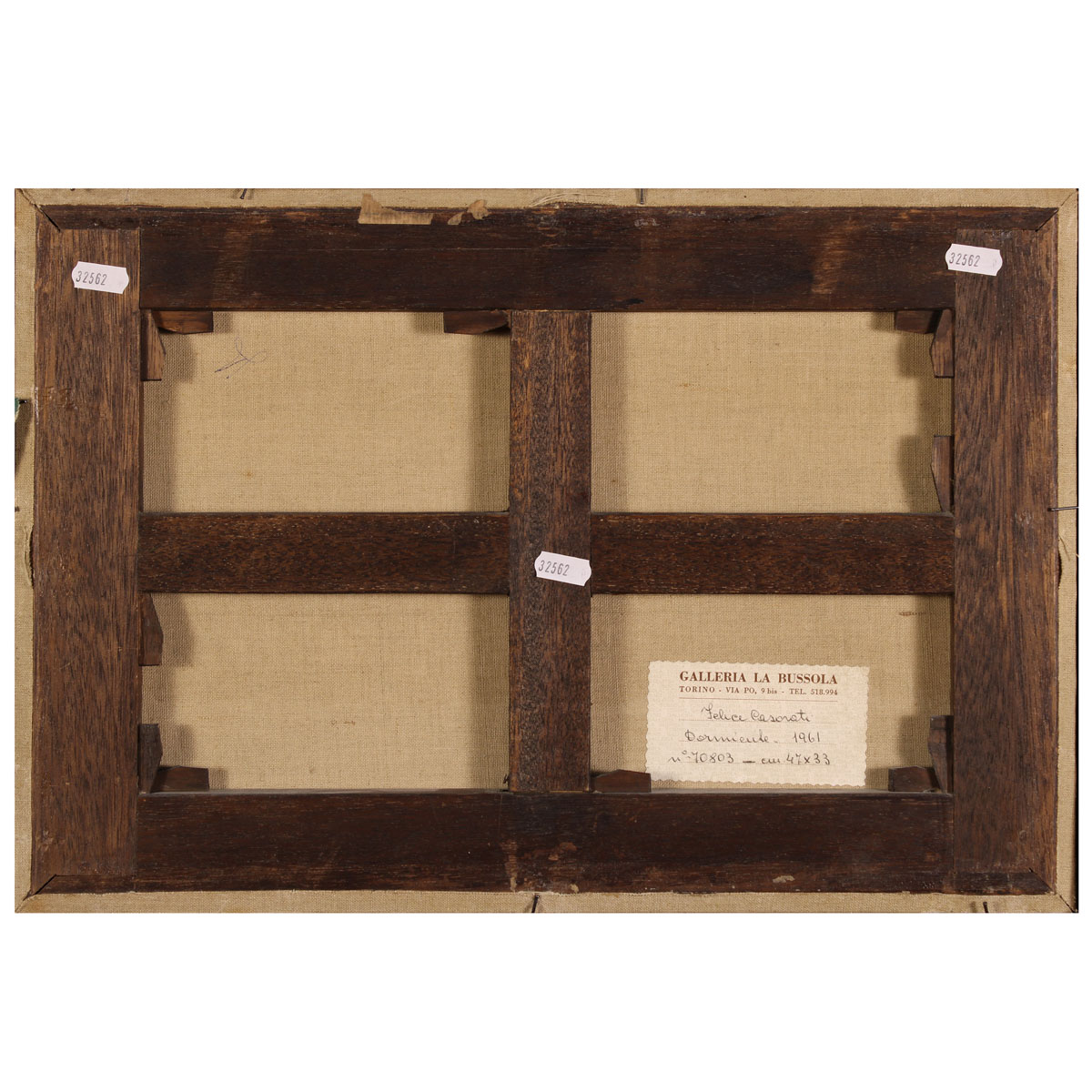 "Dormiente", tempera su carta applicata su tela, firmata in basso a sinistra, entro cornice