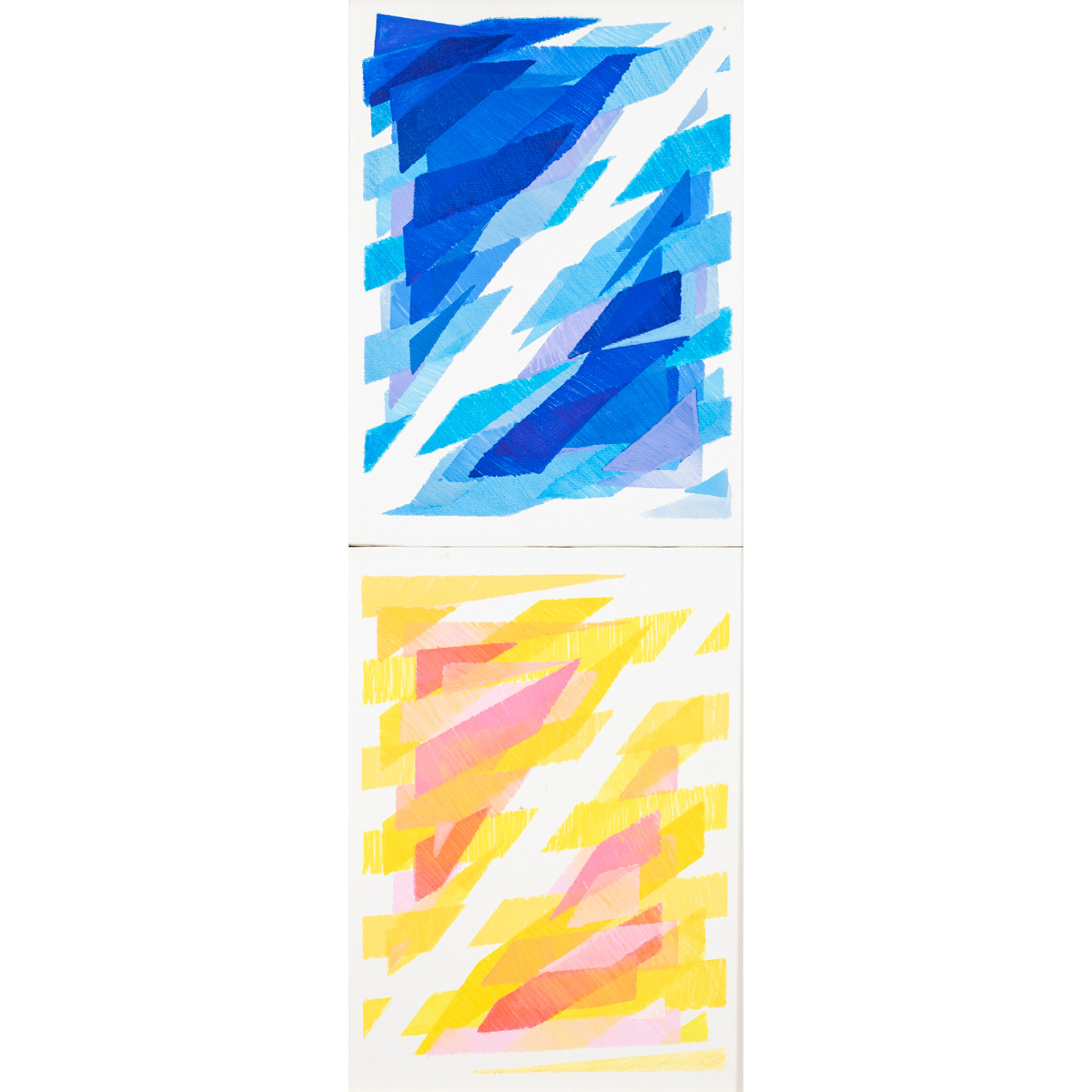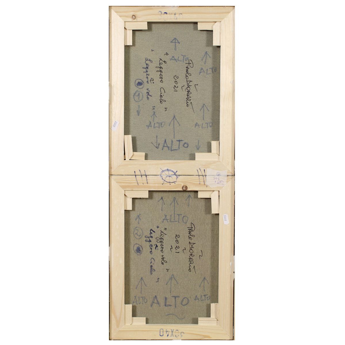 "Leggero cielo - Leggero volo", 2021, dittico acrilico su tela, firmato, datato e titolato sul retro, entro cornice
