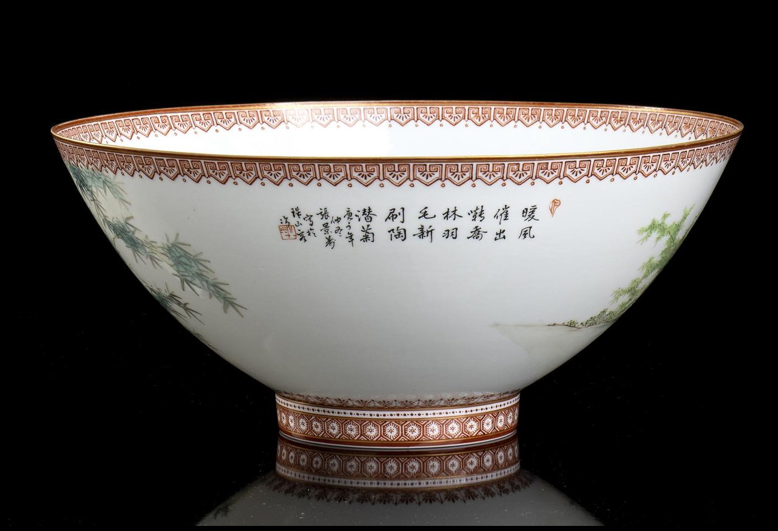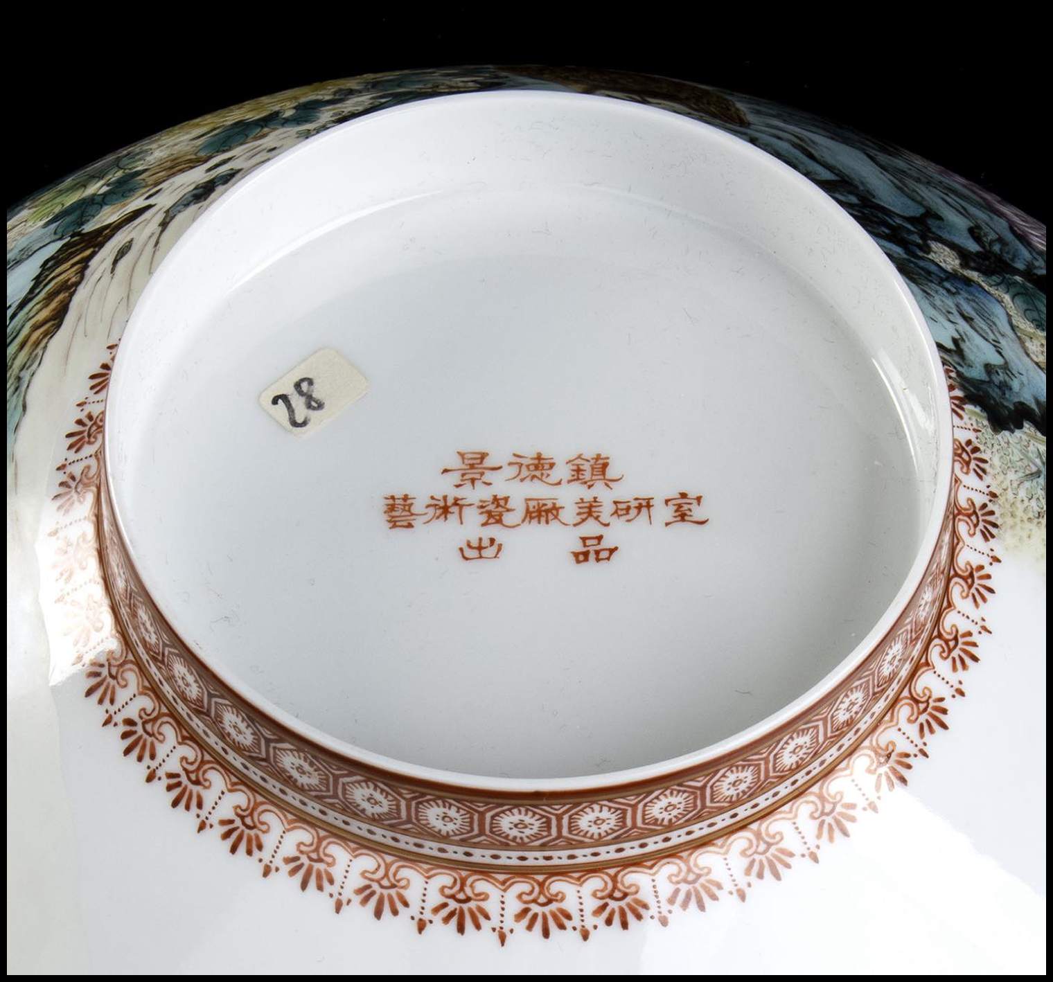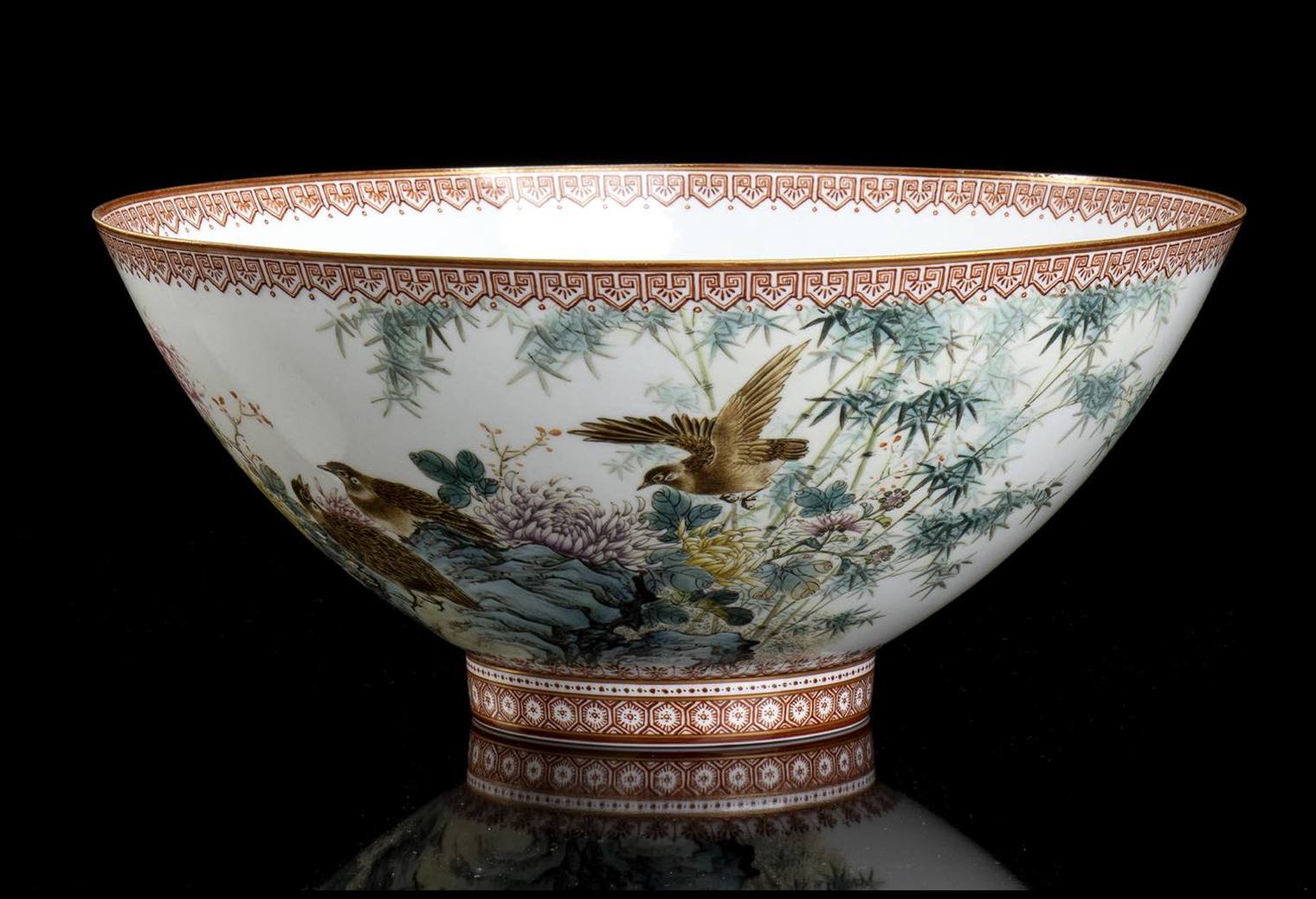 GRANDE CIOTOLA IN PORCELLANA CON DECORO A SMALTI POLICROMI Cina, XX secolo