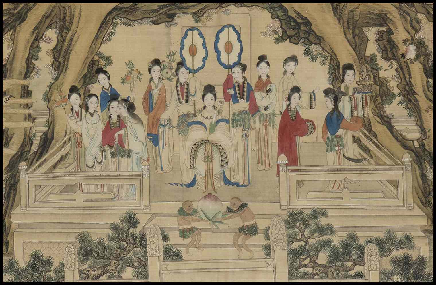 DIPINTO A INCHIOSTRO E COLORI SU SETA CON XIWANGMU E ATTENDENTI Cina, dinastia Qing, periodo Qianlong, datato 1784