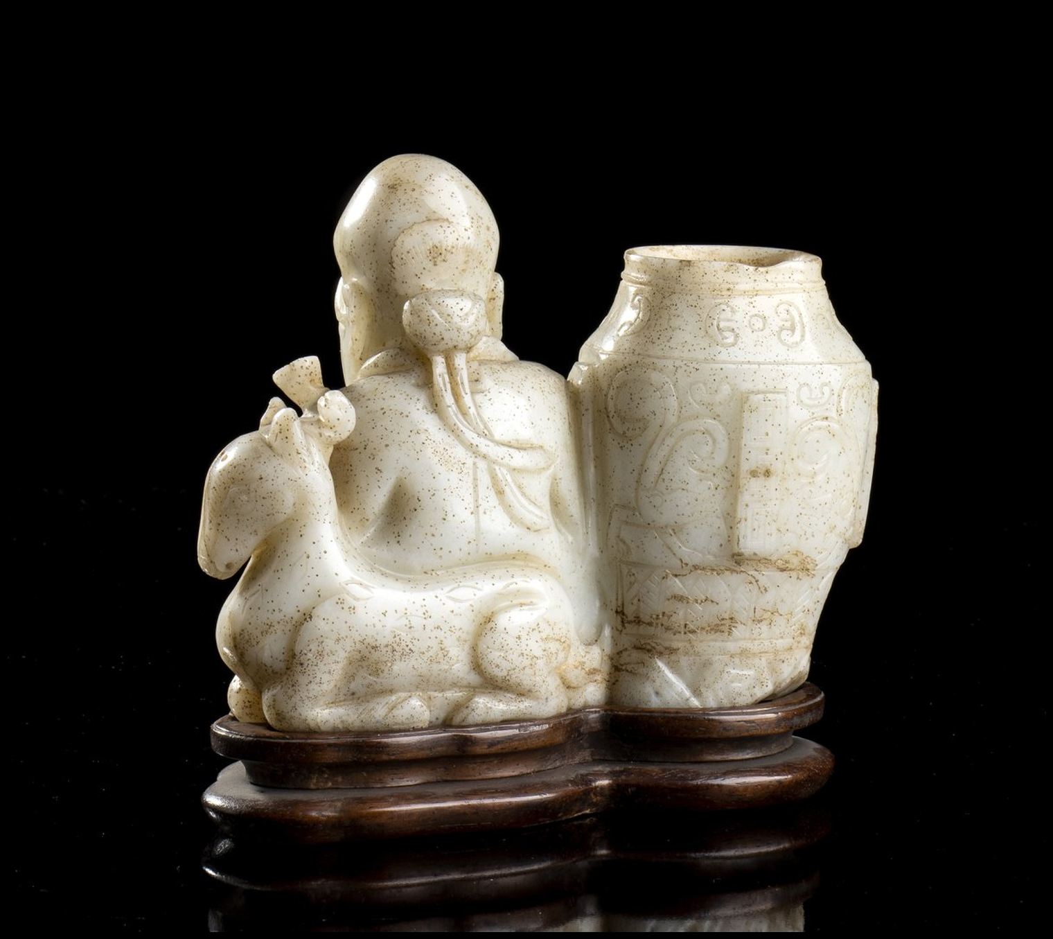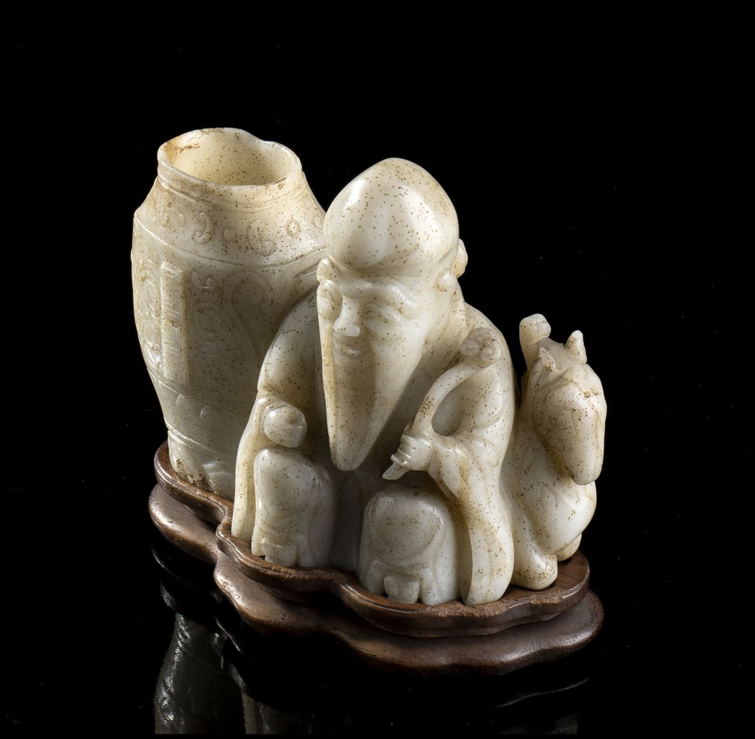 INTAGLIO IN GIADA CON SHOULAO E UNA GIARA Cina, dinastia Ming