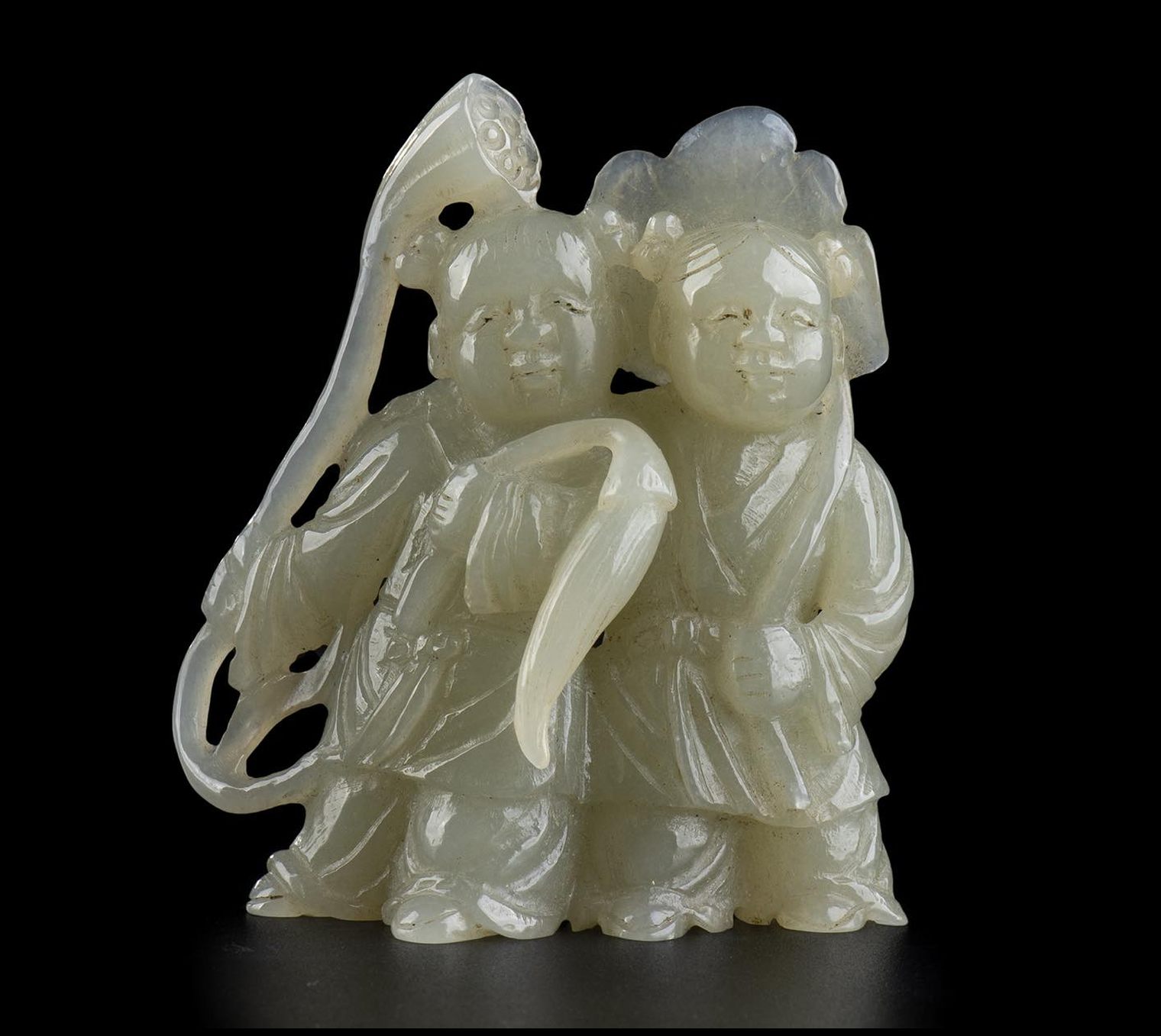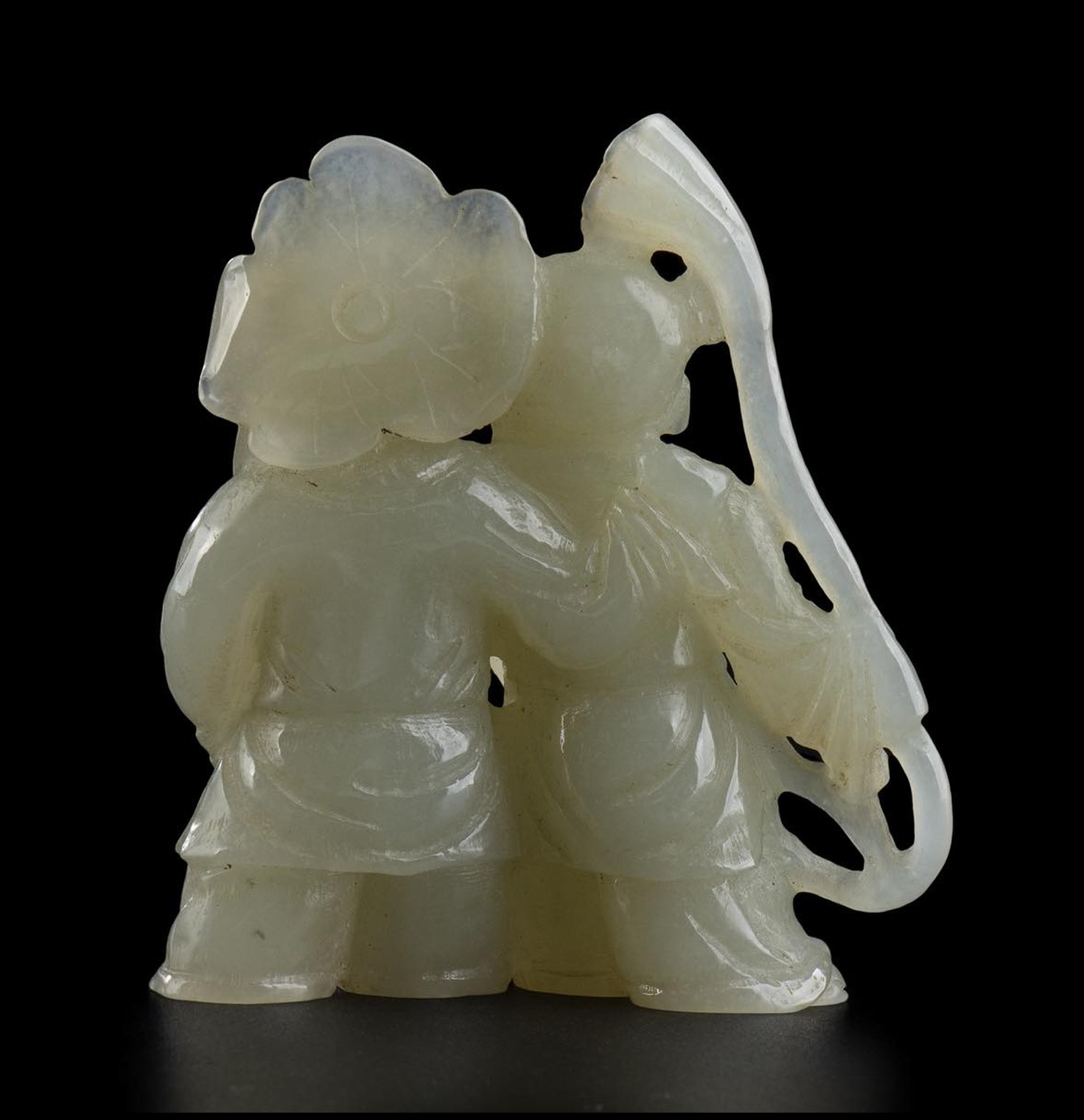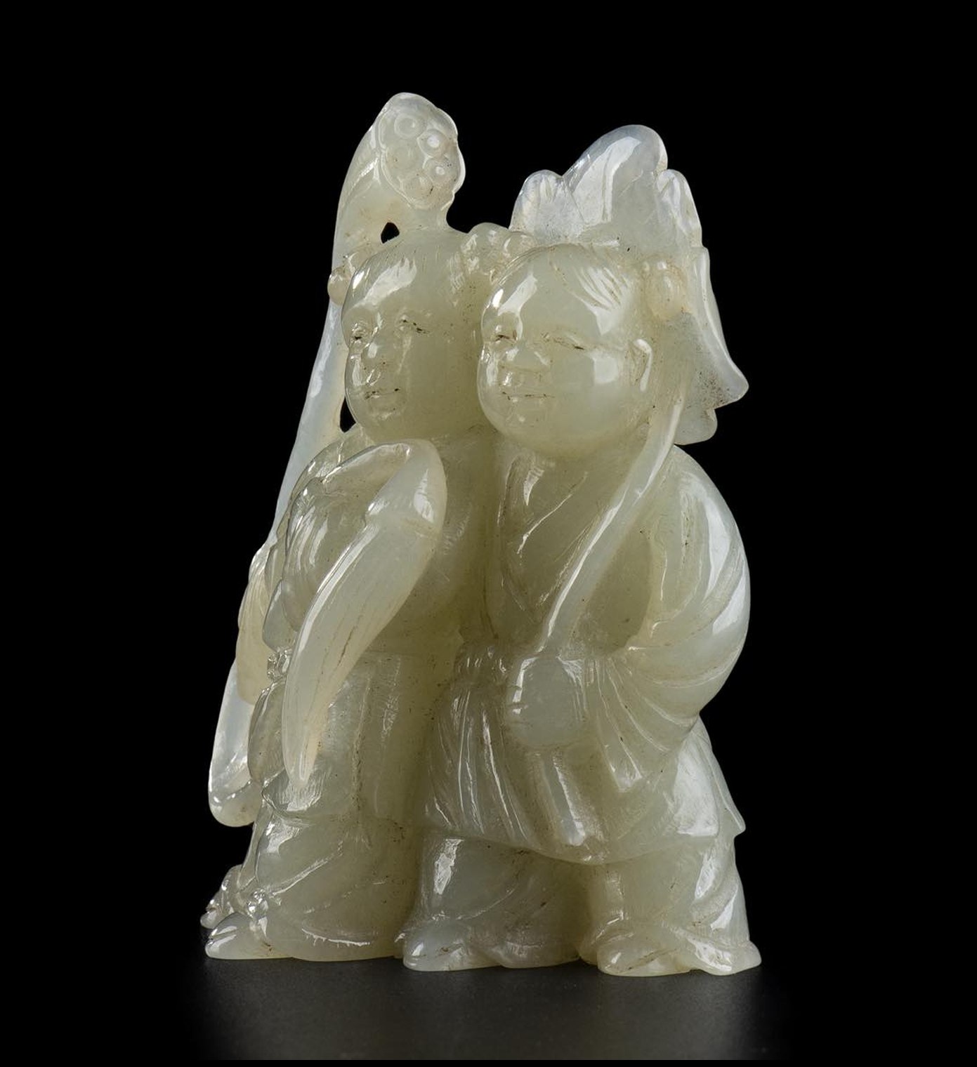 INTAGLIO IN GIADA VERDE CHIARO CON DUE BAMBINI Cina, dinastia Qing, XIX secolo