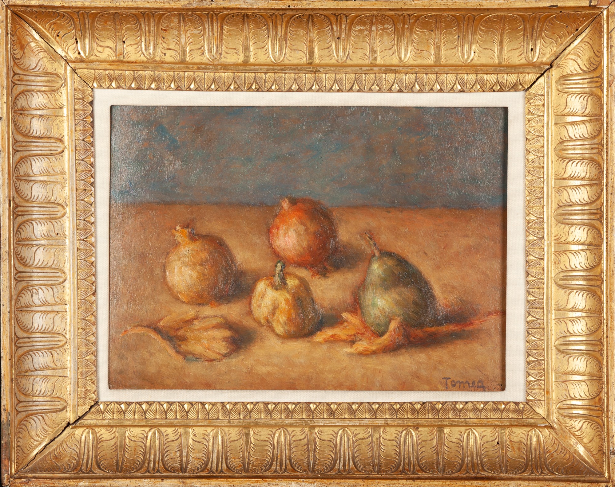 Firma in basso a destra "Tomea". Al verso reca firma e data. Etichetta Galleria Chiurazzi, Roma