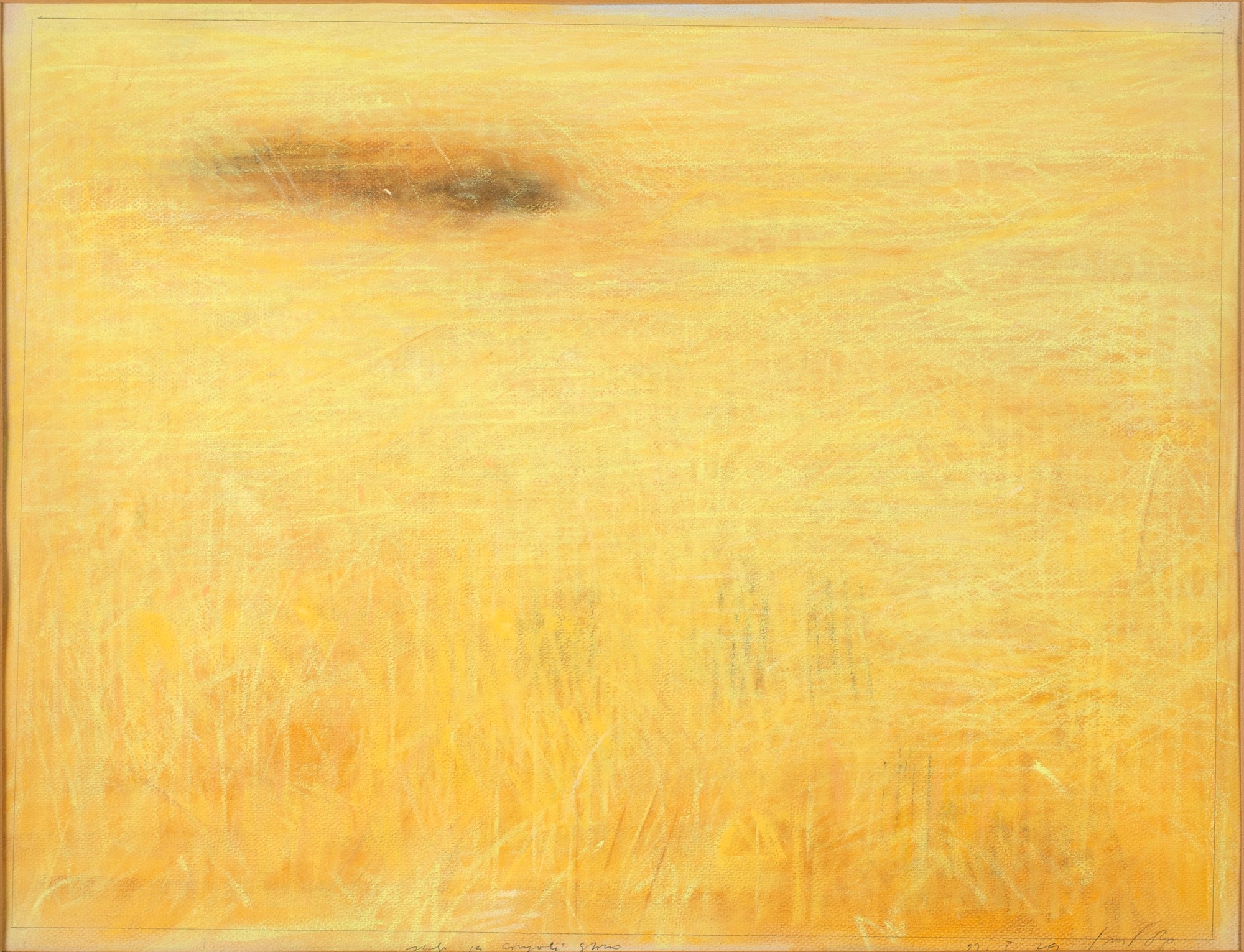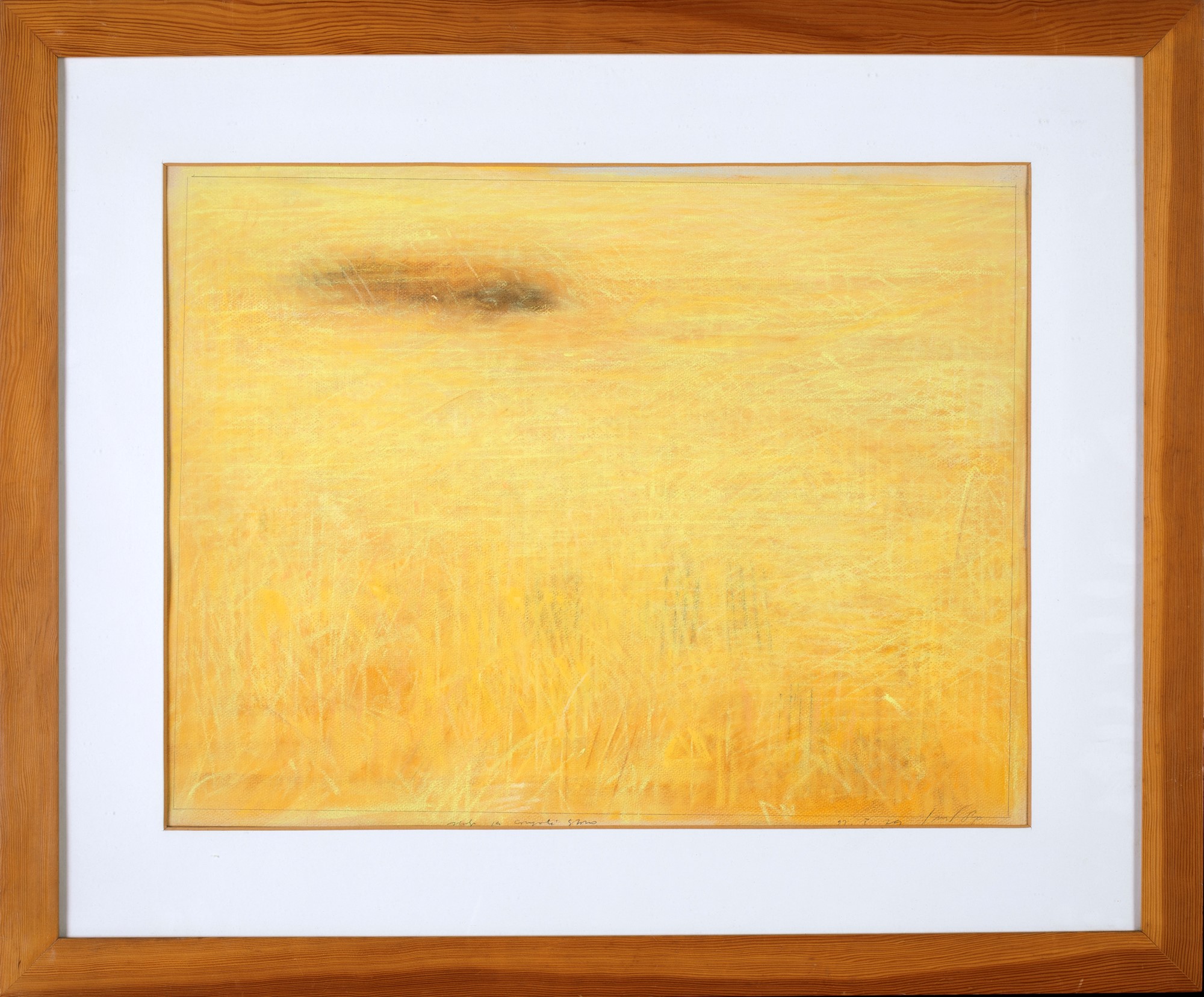 Firma, titolo e data sul fronte in basso "Studio per campo di grano / 22.5.1979 / Guccione". Al verso reca etichetta Galleria Il Gabbiano (Roma).