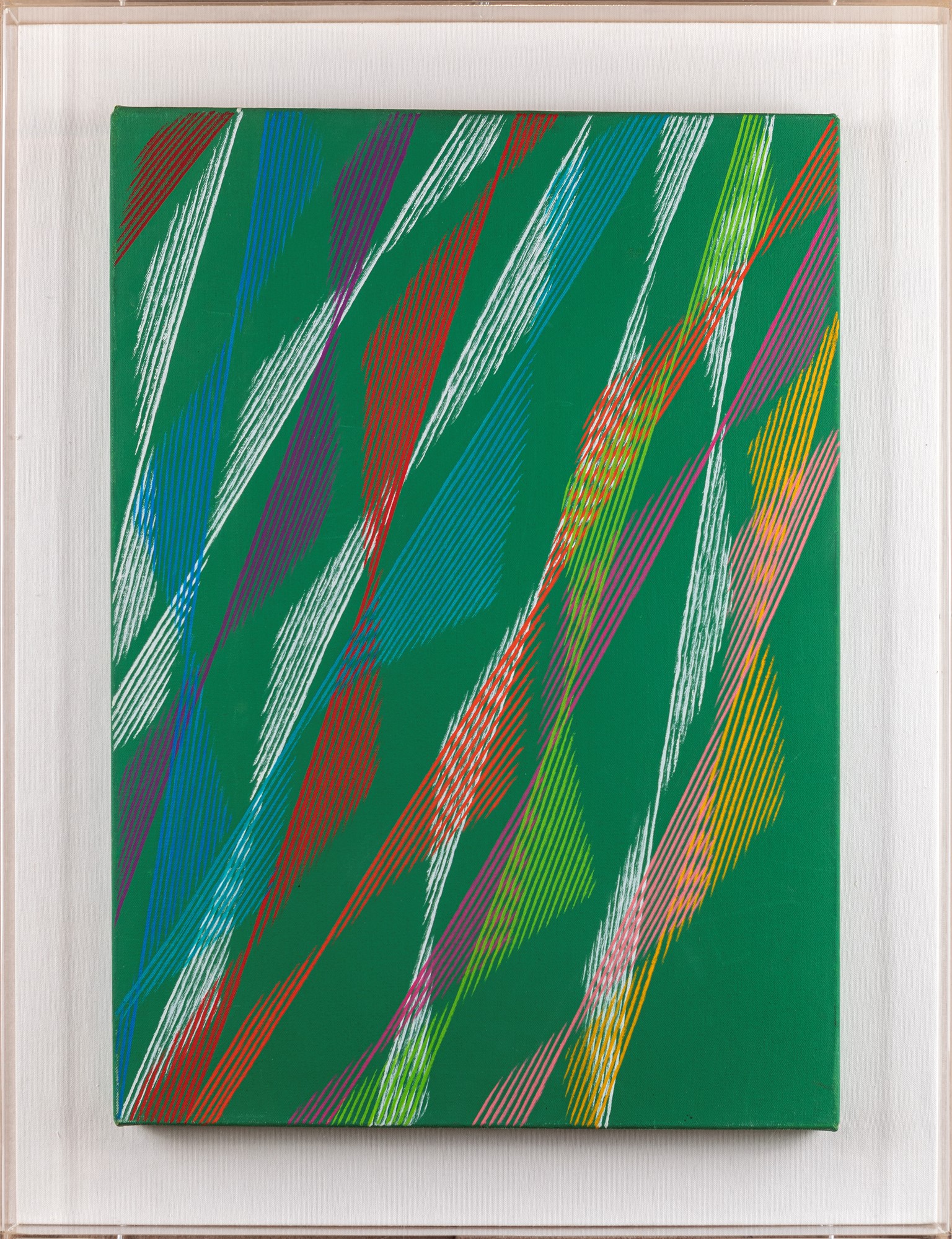 Al verso reca firma, data e titolo "Piero Dorazio / 1990 / Alhambra". Etichetta della Galleria Arte Moderna f.lli Orler. Etichetta Galleria Poleschi Arte Milano. Etichetta Arte Fiera '98 Bologna. Timbro "Piero Dorazio Todi" con numero d'archivio 2360.