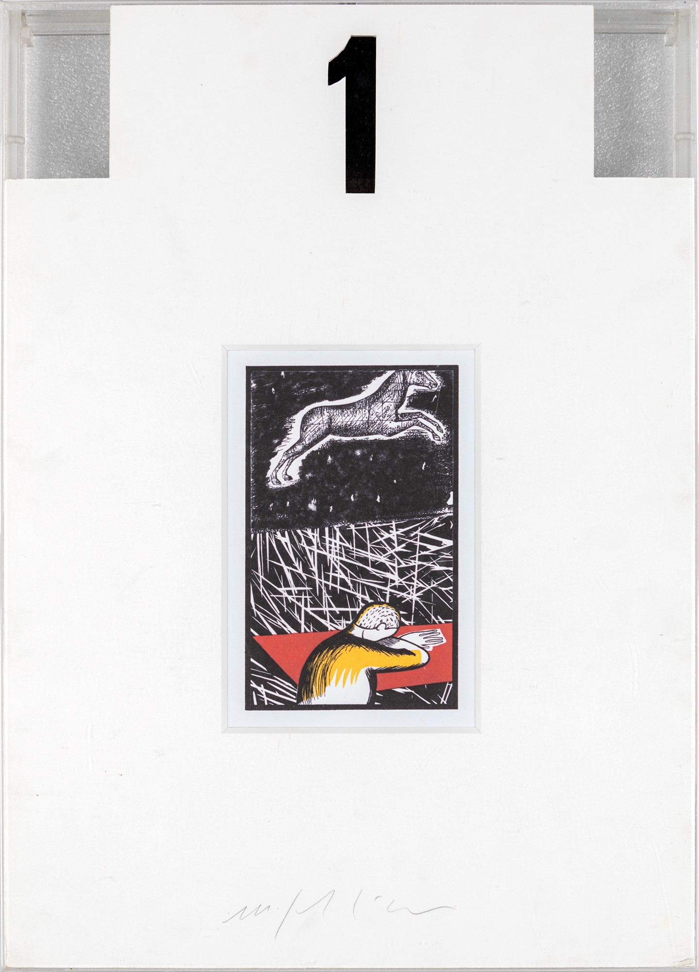 Mimmo Paladino (Paduli, 1948 - ) Senza titolo Litografia, smalto nero,...