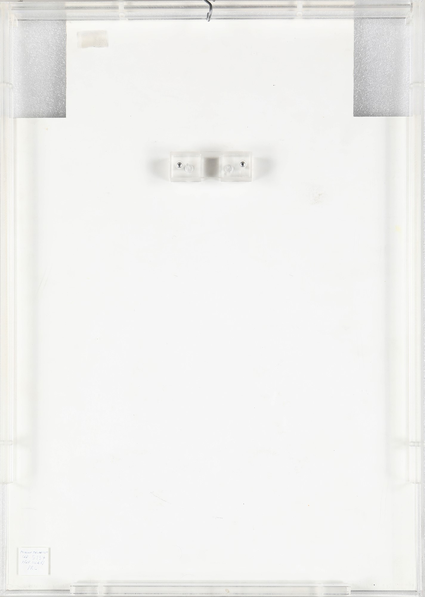 Litografia, smalto nero, cartone cm 57x40,5 - in cornice di plexiglass cm 58x41,5