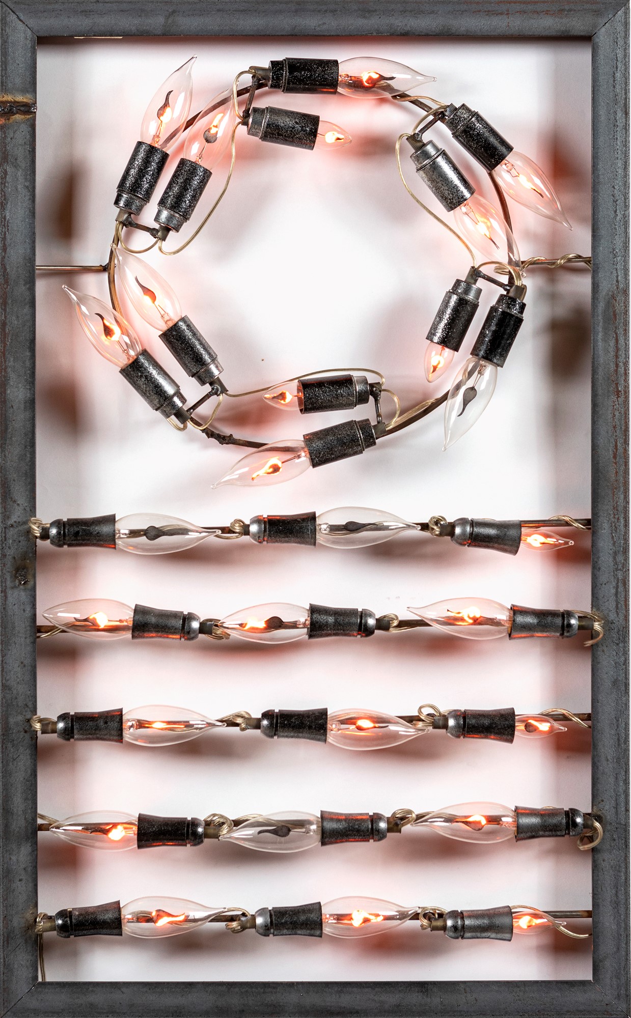 Scultura in metallo e lampadine cm 79,5x48,5x3