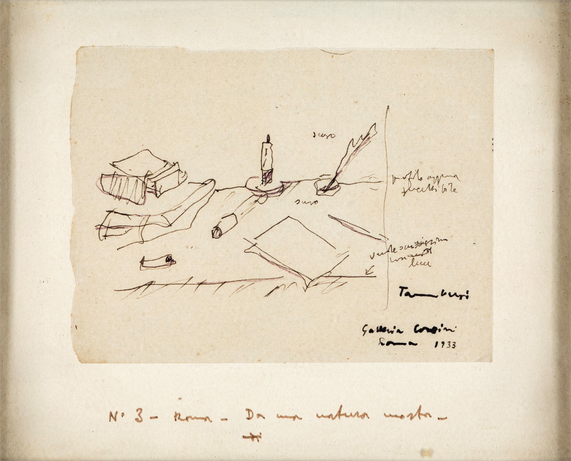 Firma, data e luogo "Tamburi, Galleria Corsini, Roma 1933".