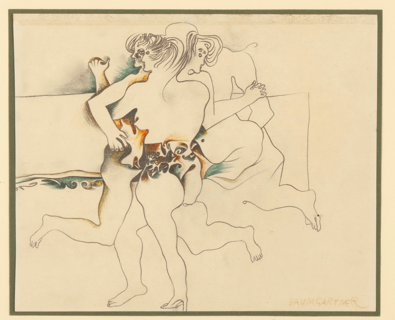 Fritz Baumgartner (1929 - 2006) Le tre grazie Matita e pastelli su carta cm...