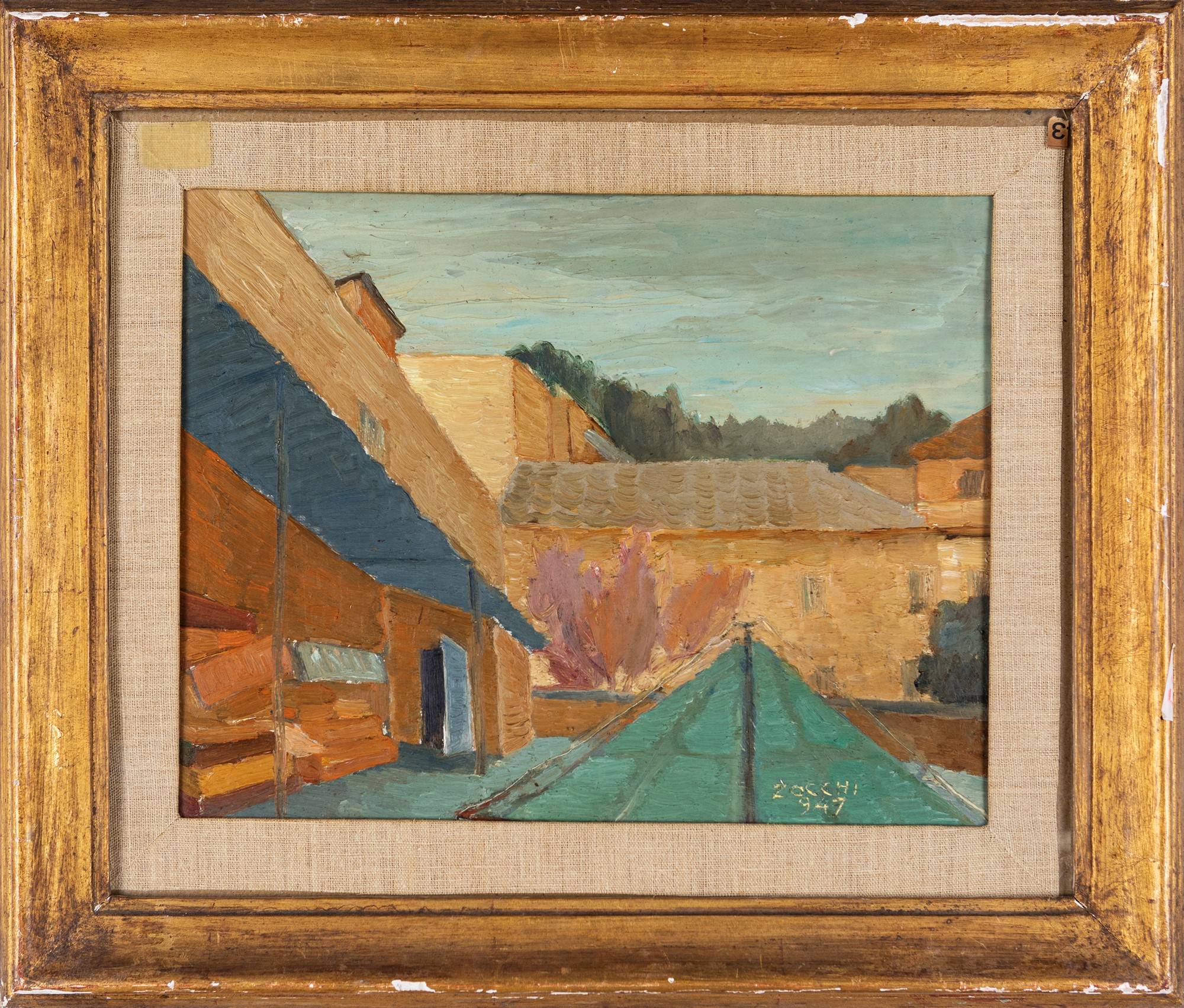 Carlo Zocchi (Milano, 1894 - Milano, 1965) Paesaggio 1947 Olio su tavola cm...