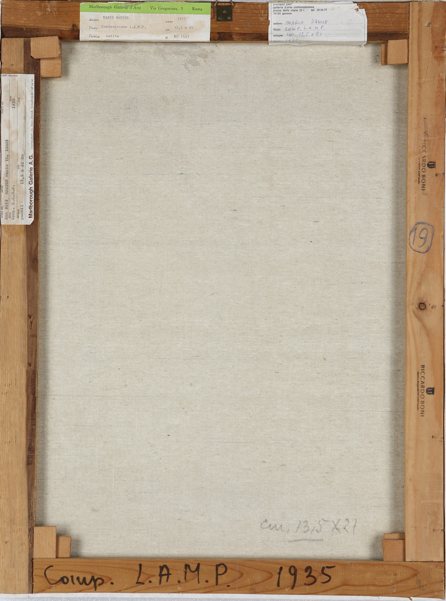 Firma e data "Radice 1935". Al verso reca etichetta della Marlborough Galleria Roma ; timbro Galleria Riccardo Boni Roma; Porquoi Pas? galleria d'arte Genova ; Marlborough Gallery Zurigo;