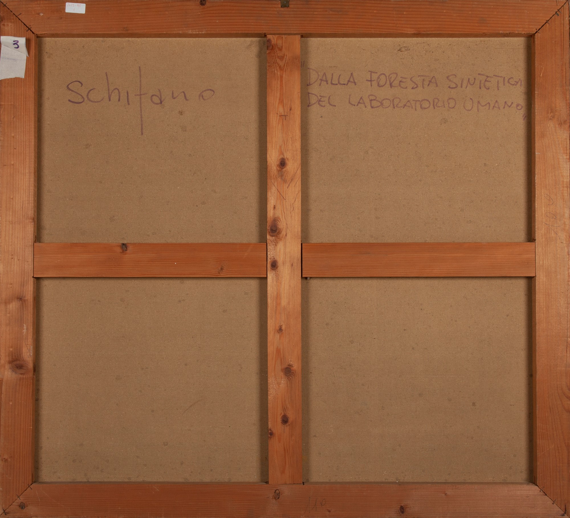 Al verso reca firma e titolo "Schifano / dalla foresta sintetica del laboratorio umano"