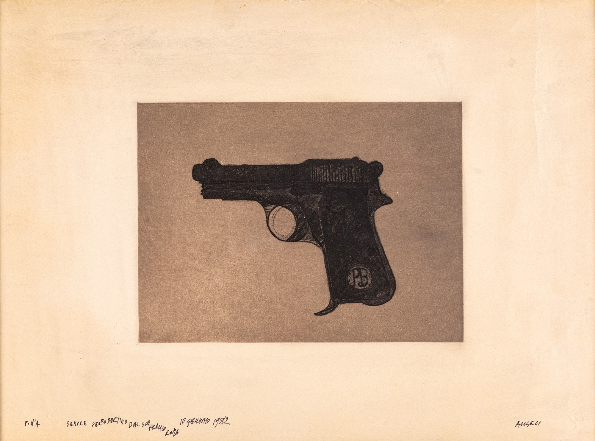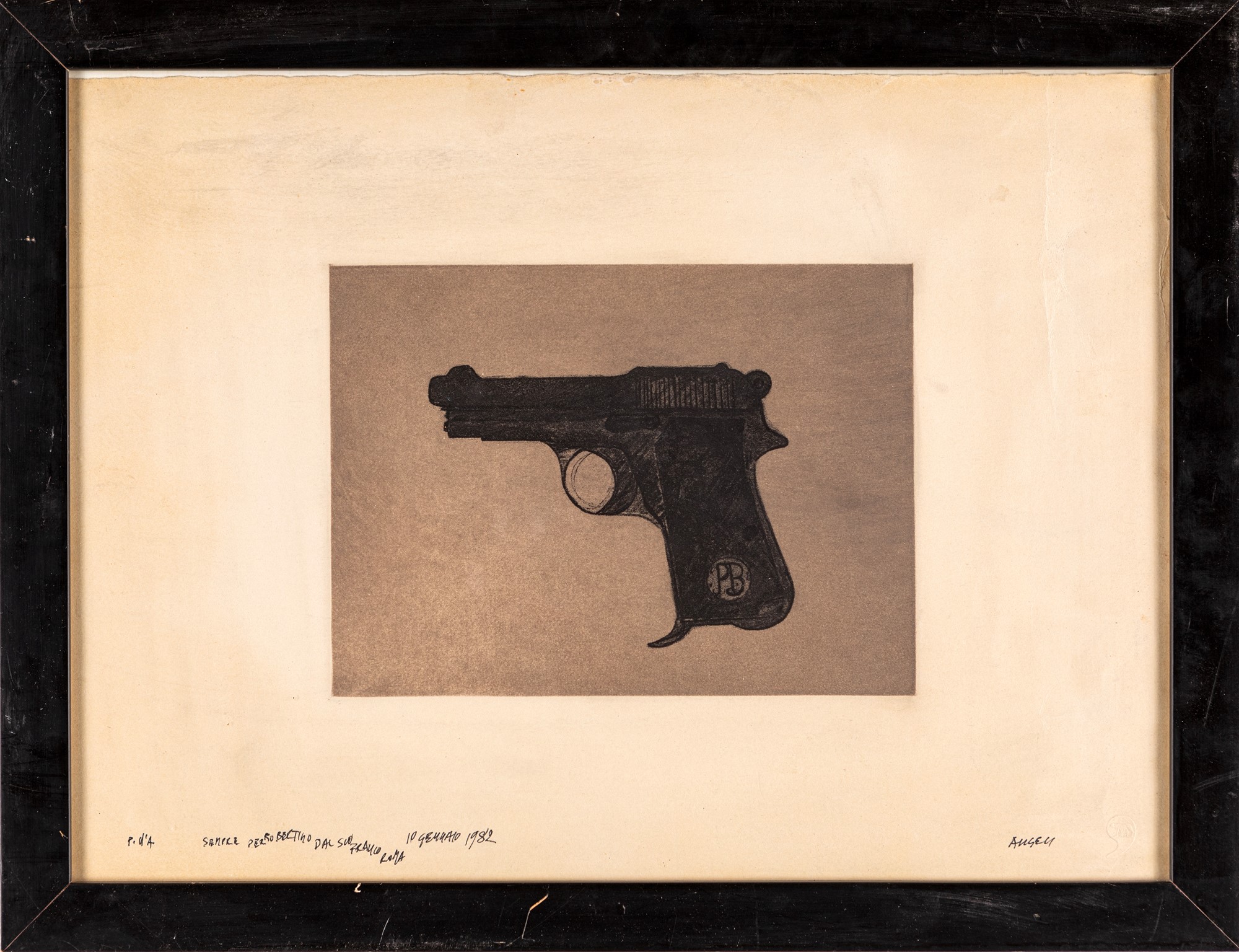 Firma, numerazione data e dedica "Angeli, sempre per Robertino dal suo Franco, Roma 10 Gennaio 1982, P.d.a"