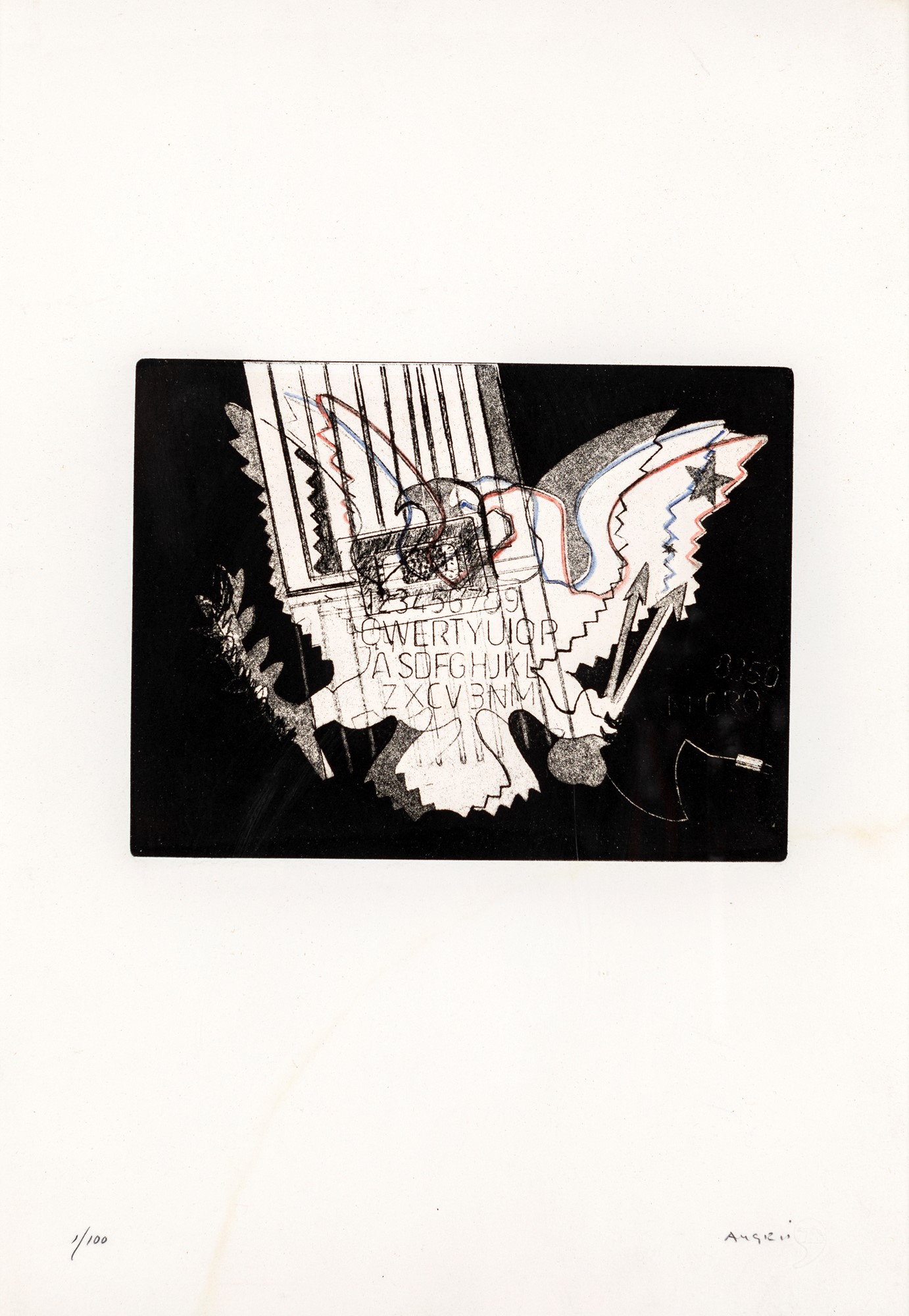 Firma e numerazione "Angeli 1/100". Timbro a secco
