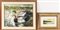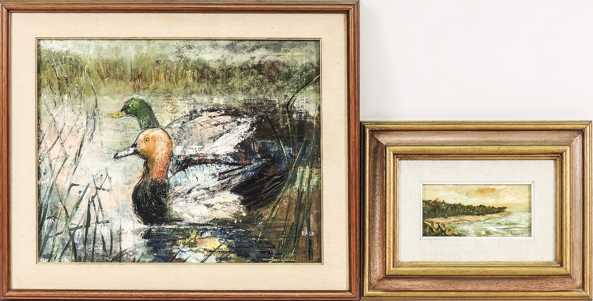 VEDUTA DI LAGO CON ANATRE E PESAGGIO MARINO - VIEW OF A LAKE WITH DUCKS AND SEASCAPE due dipinti ad olio su cartone e tela - two olis on cardboard and canvas, firmati, in cornice (2) cm 38x48 e cm 9x19