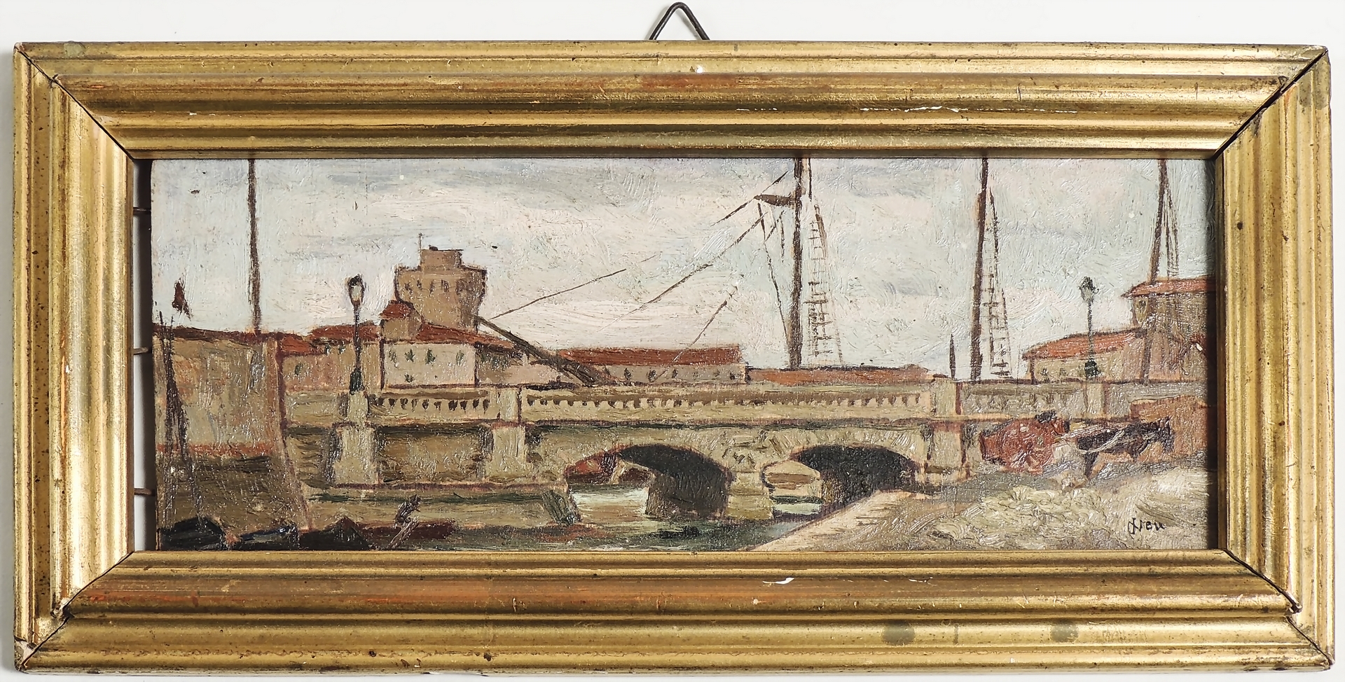 SCORCIO DI LIVORNO - VIEW OF LIVORNO olio su tavoletta - oil on panel, firmato, in cornice cm 9x22