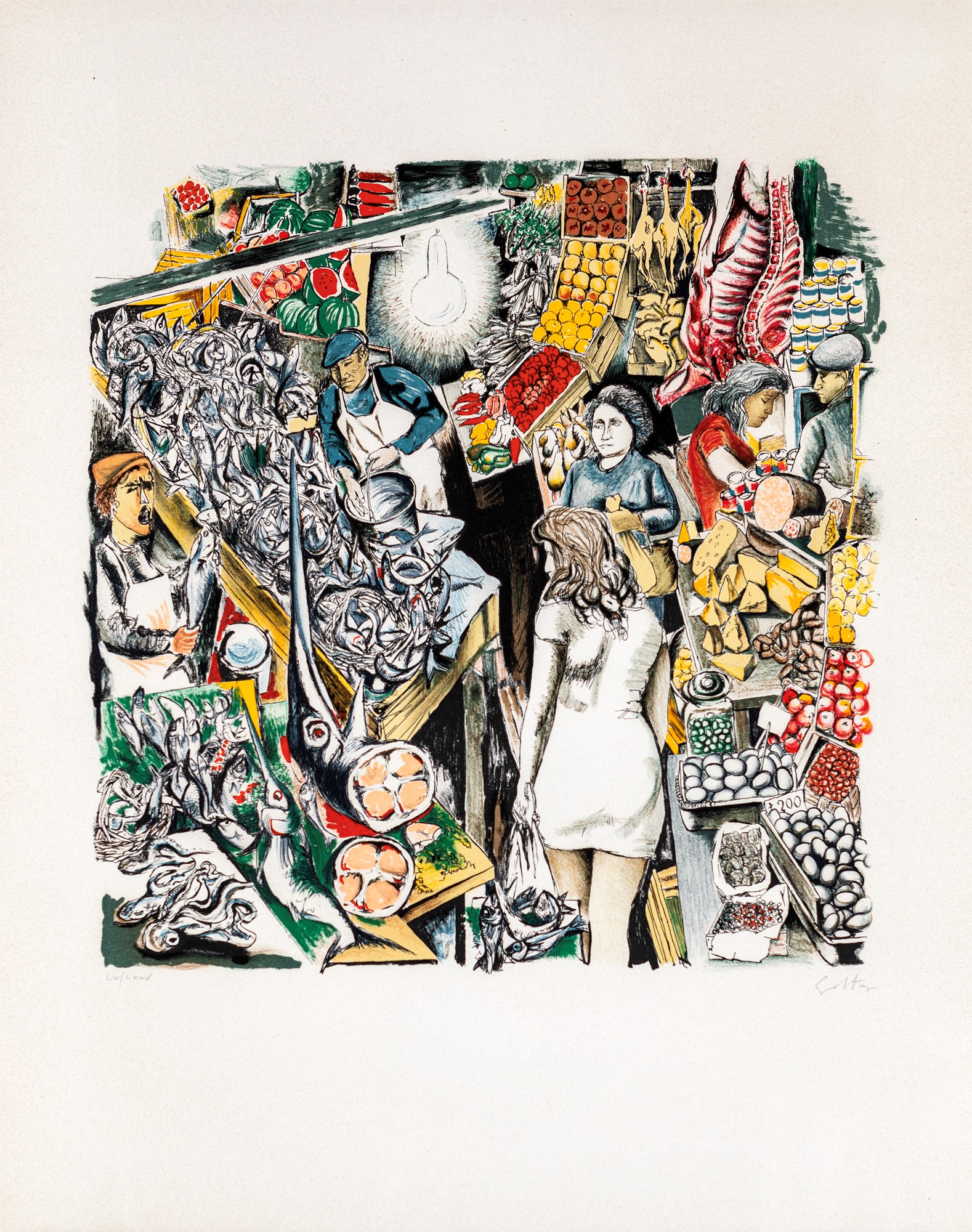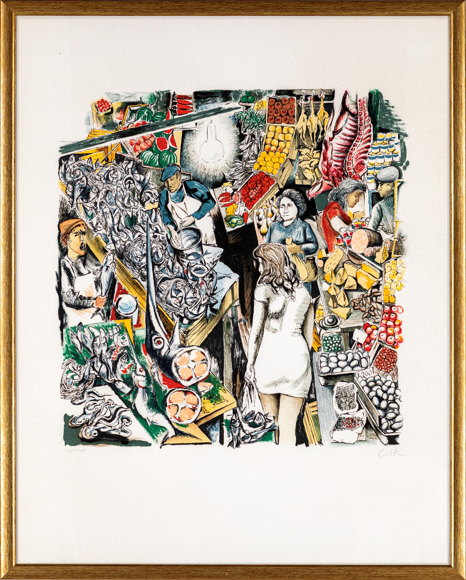 Renato Guttuso (Bagheria, 1911 - Roma, 1987) Vucciria Litografia acquarellata...