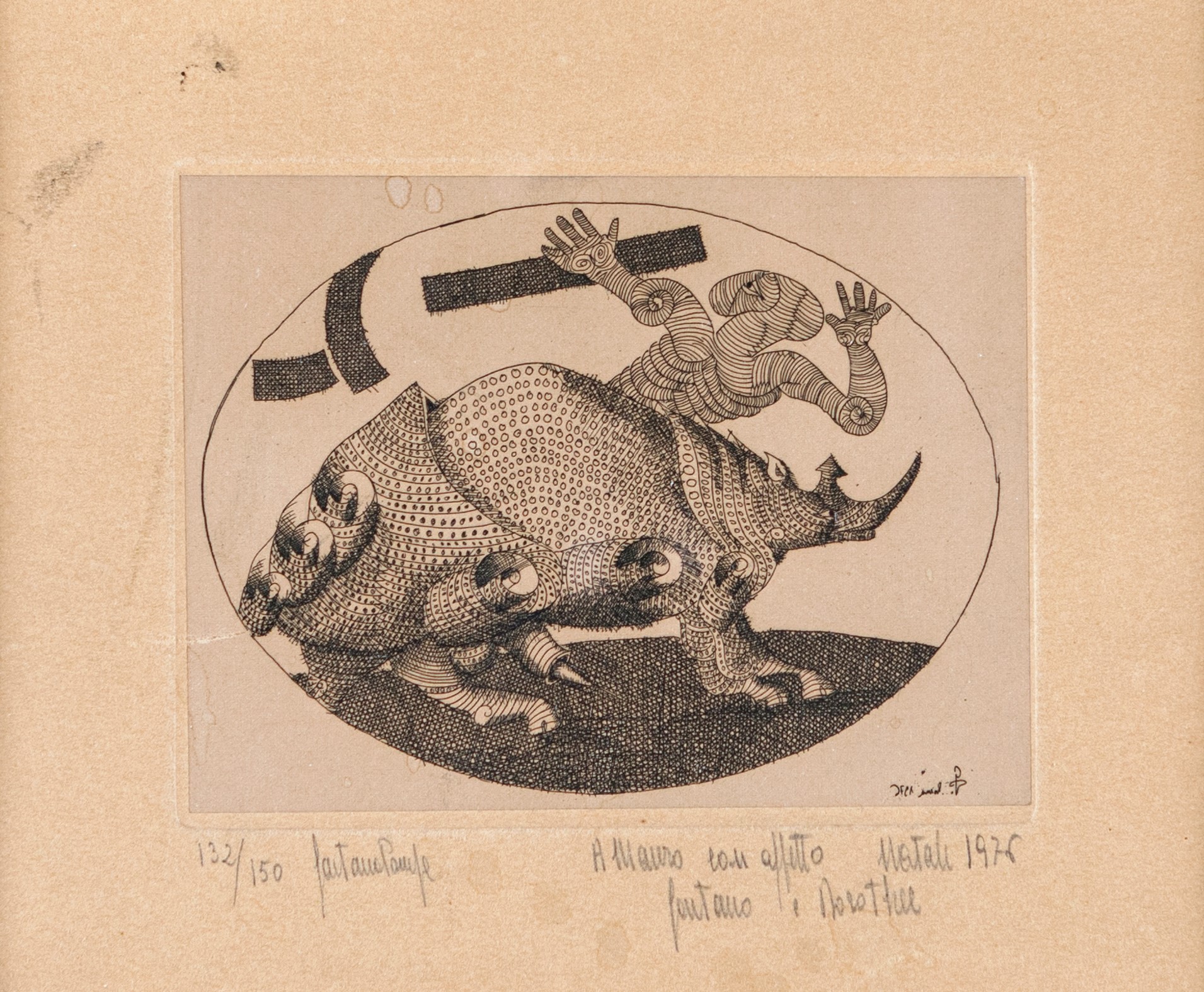 Firma, numerazione e dedica sul fronte "Gaetano Pompa 132/150 / A Mauro con affetto Gaetano e Dotohee, Natale 1976"
