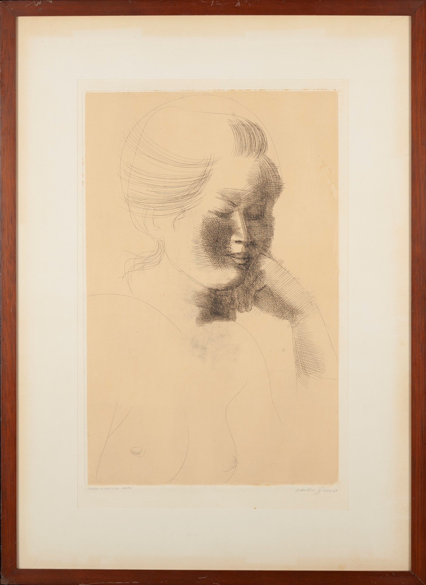 Emilio Greco (Catania, 1913 - Roma, 1995) Ritratto di donna Acquaforte cm...