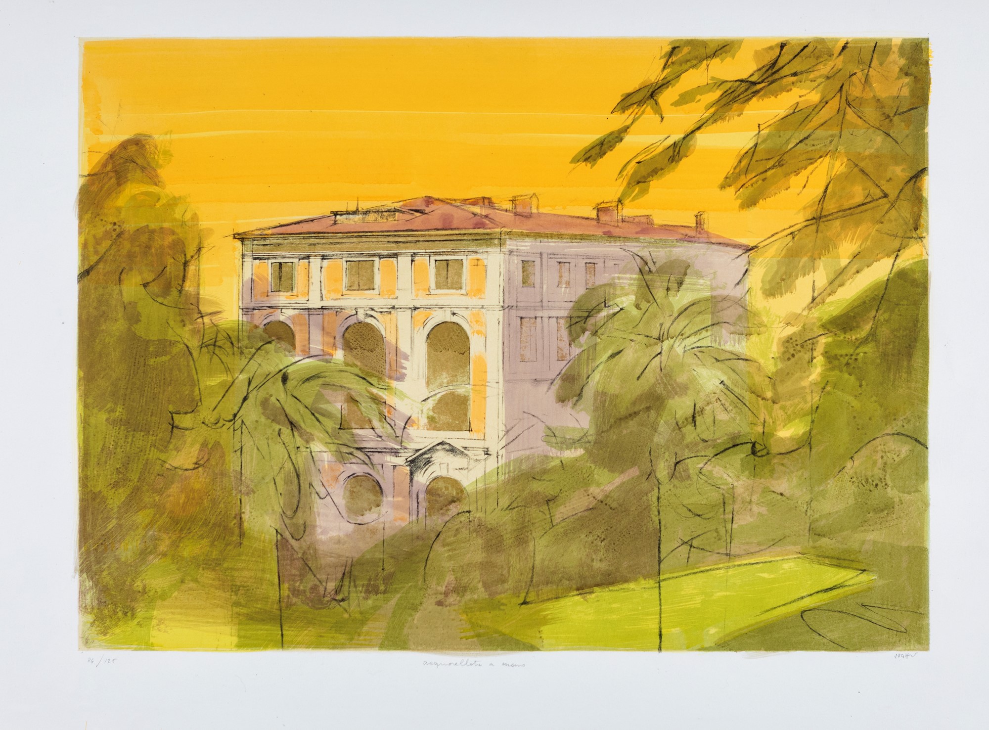Alberto Sughi (Cesena, 1928 - Bologna, 2012) Villa Romana Litografia con...