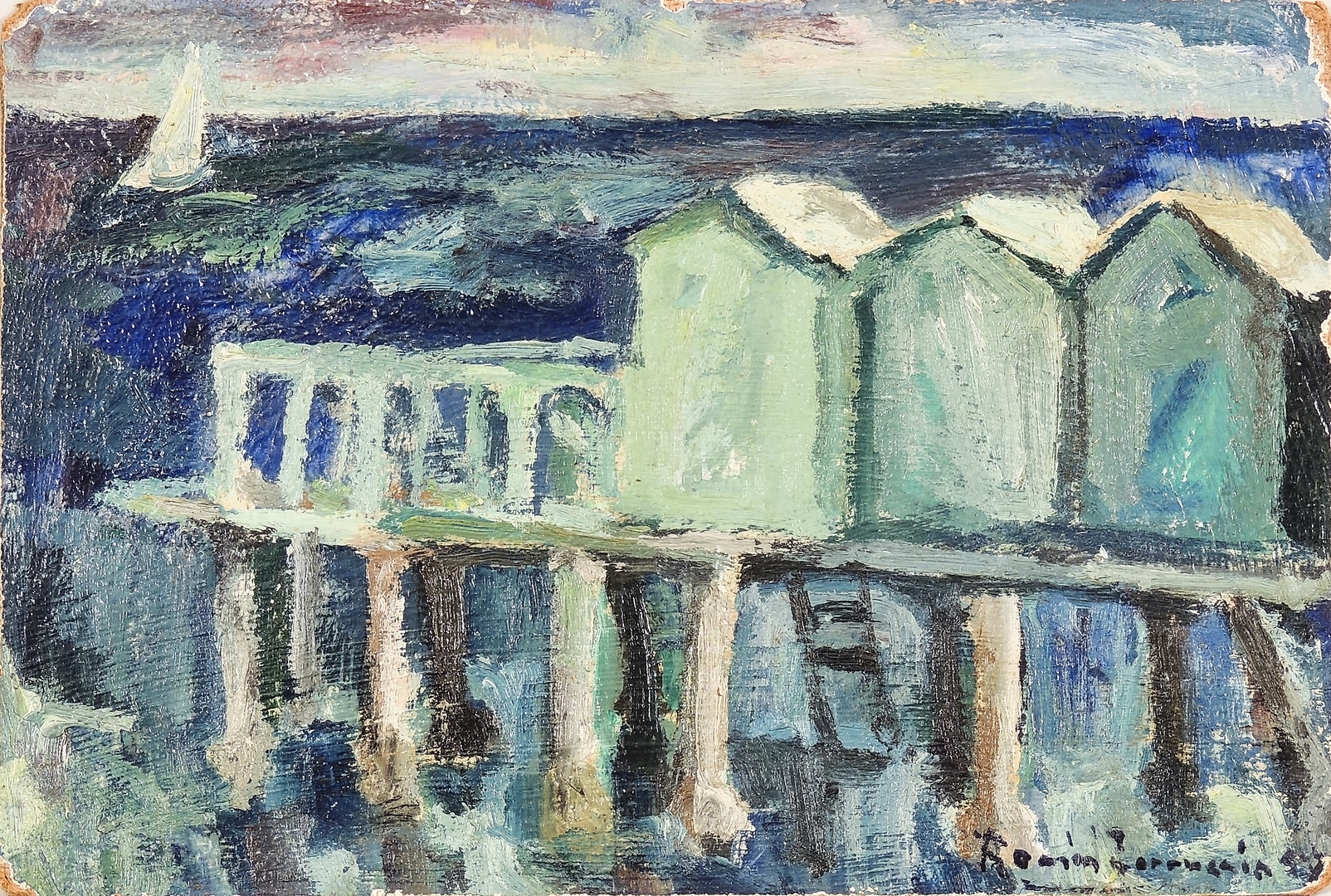 FERRUCCIO ROSINI Bagni a Livorno - Seascape olio su cartone - oil on cardboard, firmato cm 22x32