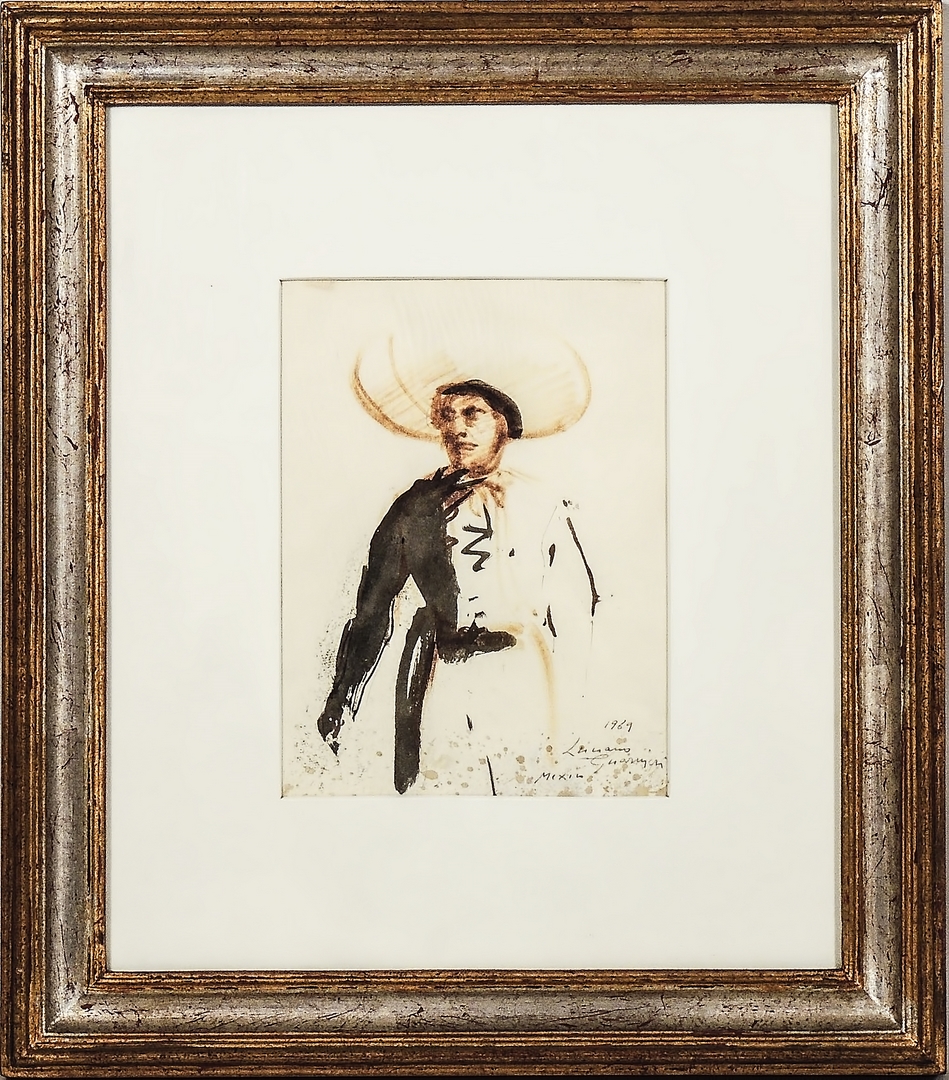 LUCIANO GUARNIERI (1930-2009) Figura con sombrero - Figure with Sombrero tecnica su carta - mixed media on paper, firmato e datato 1969, in cornice cm 22x17