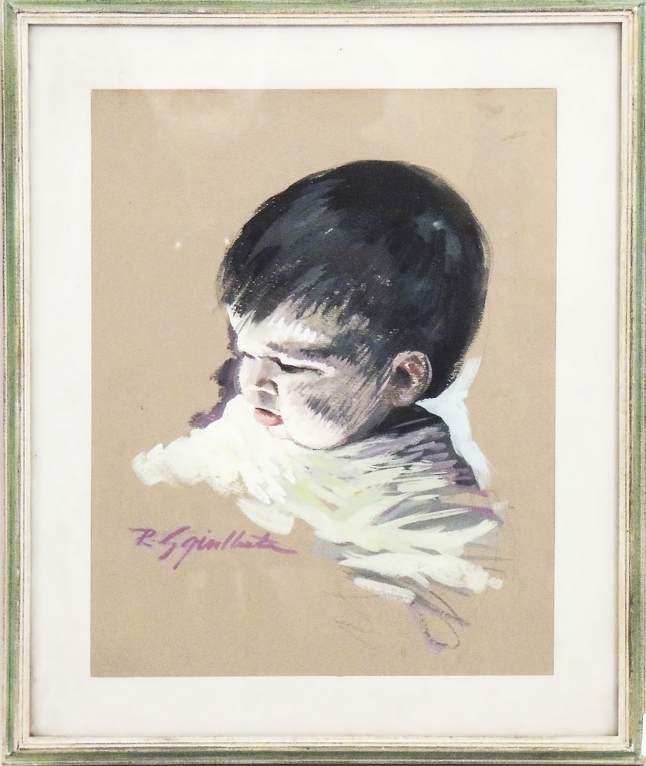 REMO SQUILLANTINI (1920-1996) Ritratto del figlio - Portrait of the Painter's Son tempera su carta - tempera on paper, firmato, in cornice cm 30x23