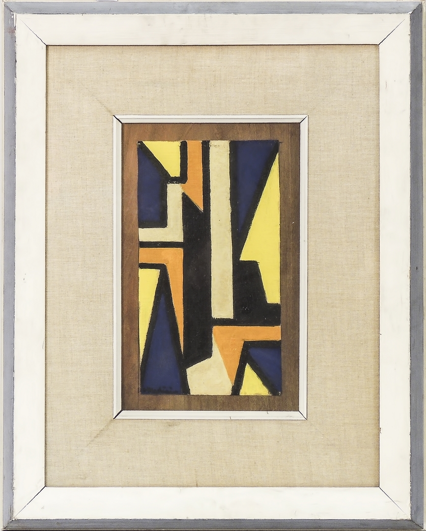 OSVALDO MEDICI (1902-1978) Composizione geometrica - Geometric Composition olio su tela applicata a tavoletta - oil on canvas laid on panel, in cornice cm 27x15 Al verso reca iscritto: Osvaldo Medici Via B. Fortini 28 Firenze