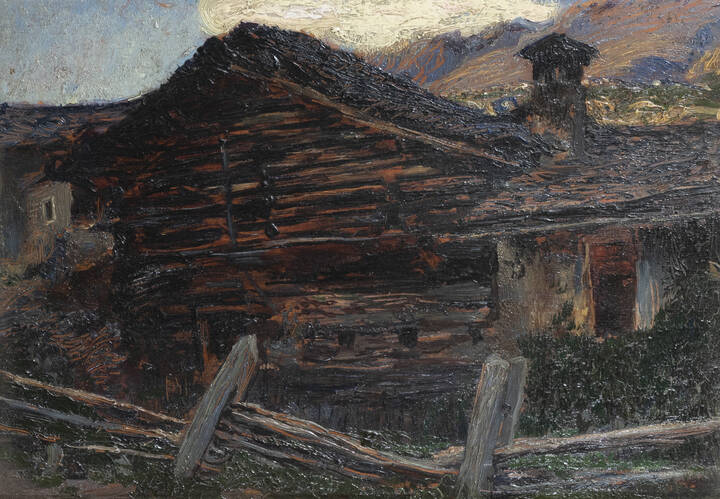 ANDREA TAVERNIER<BR>Torino 1858 - 1932 Grottaferrata (RM)<BR>"Baite in montagna"