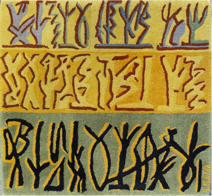 111x122 arazzo in lana merinos annodata