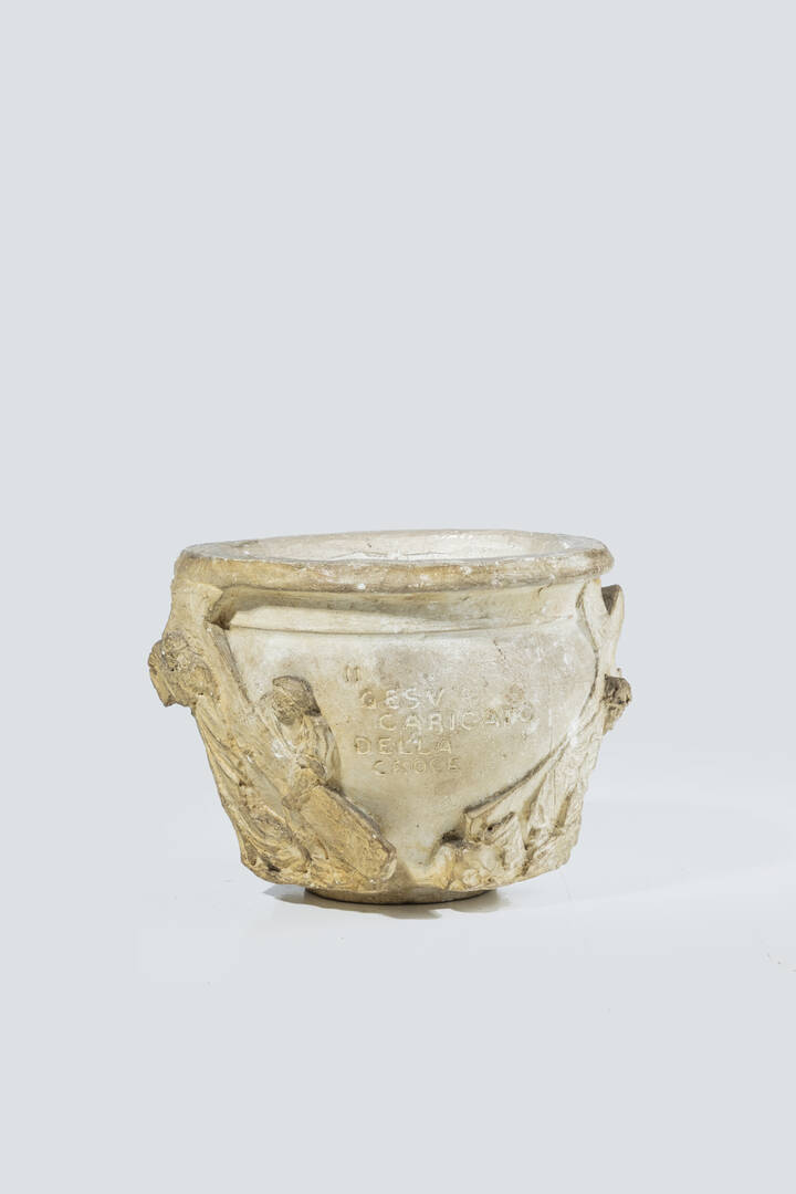 H. cm 12,5, diam.15,5 gesso di uno dei cinque scaldini con le quattordici stazioni della via crucis