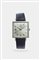 Cassa cromata di forma quadrata con fondello in acciaio a scatto. Quadrante argento con indici geometrici applicati.