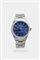 Cassa in acciaio con fondello e corona a vite. Quadrante blu microlavorato con indici geometrici applicati ed indicazione dei secondi continui al centro.