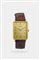 Cassa in oro con fondello a scatto. Quadrante champagne con indici geometrici applicati e secondi continui al 6.