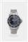 Cassa in acciaio con fondello a vite. Quadrante nero “Swiss” con indici geometrici applicati ed indicazione centrale dei secondi continui. Bracciale ref.93150 con prolunga sub.