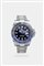 Cassa Oyster fon fondello a vite; lunetta in ceramica blu e nera. Quadrante nero con indici geometrici applicati, datario al 3 e lancetta aggiuntiva con funzione GMT.