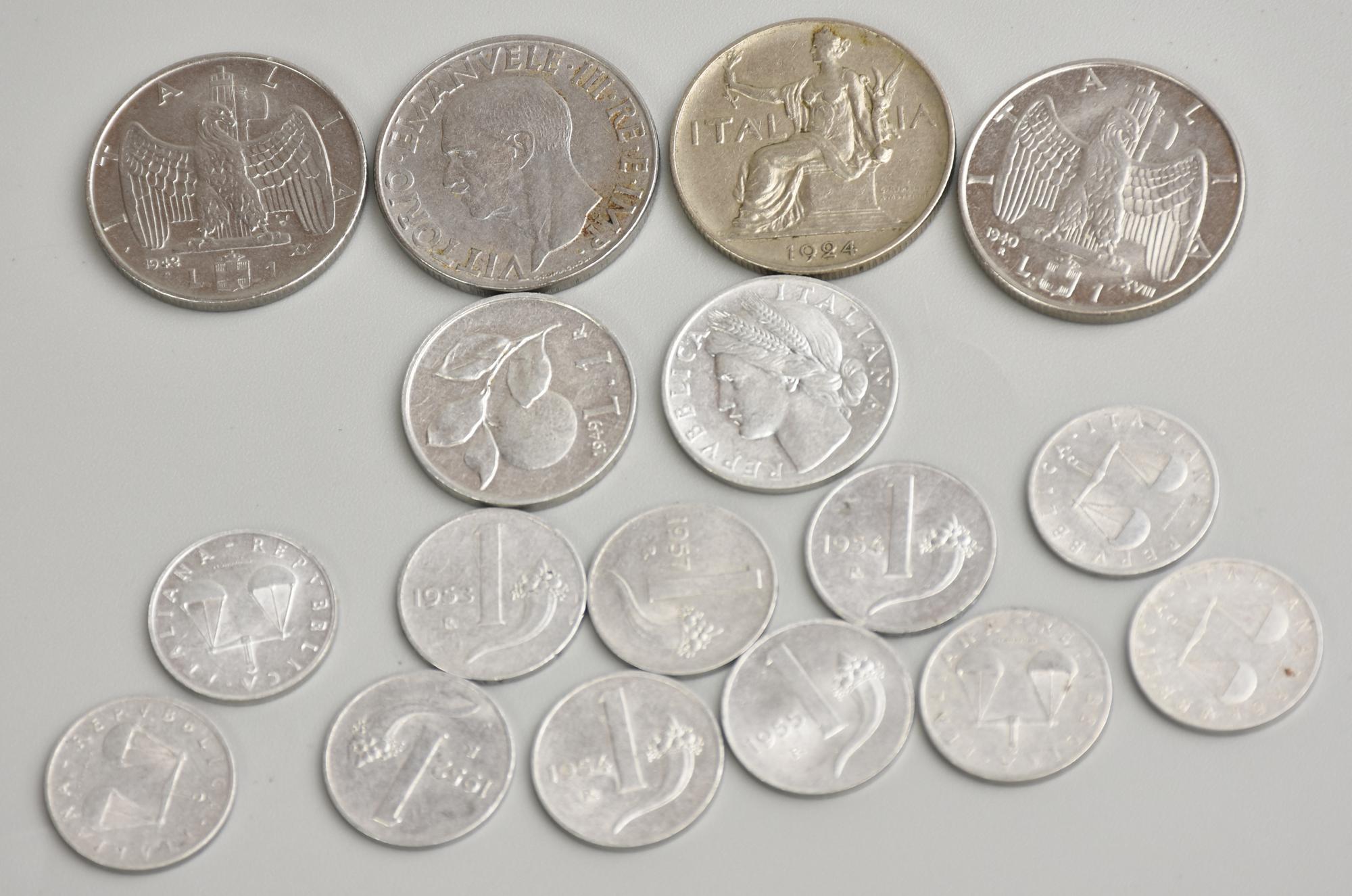 LOTTO DI LIRE ITALIANE composto da 17 monete da 1 lira varie annate di...