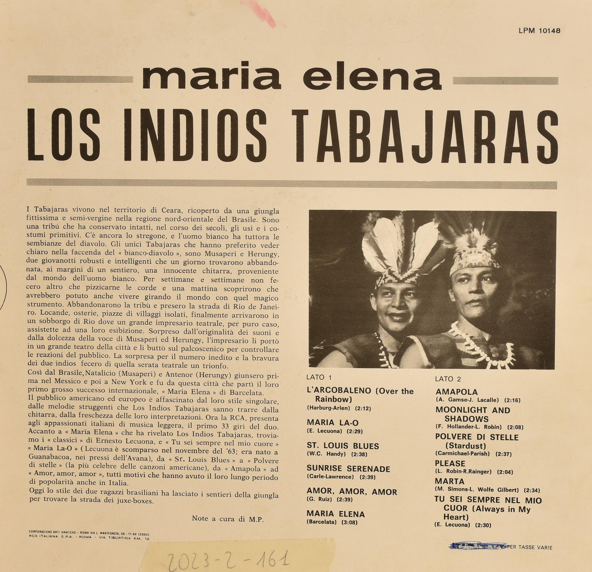 Precedente Lotto 157 Successivo Livebid - Via Tiziano Vecellio 34/D, 10126 Torino DISCHI VINTAGE E DA COLLEZIONE Sessione Unica giovedì 8 giugno 2023 ore 21:00 (UTC +01:00) LP 33 GIRI Maria Elena, Los Indios Tabajaras LP 33 GIRIMaria Elena, Los Indios Tabajaras