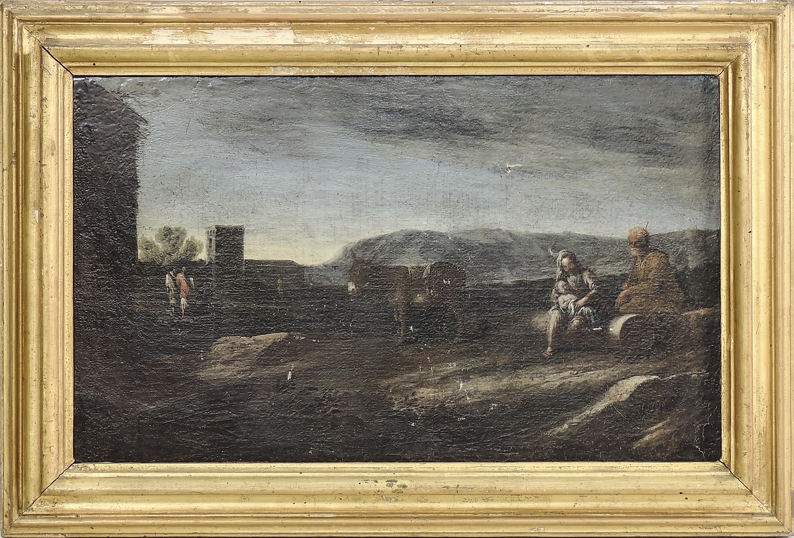 SCUOLA TOSCANA DEL XVII SECOLO - TUSCAN SCHOOL OF 17TH CENTURY Il riposo durante la fuga in Egitto - Rest on the Flight into Egypt olio su tela - oil on canvas in cornice cm 32x52