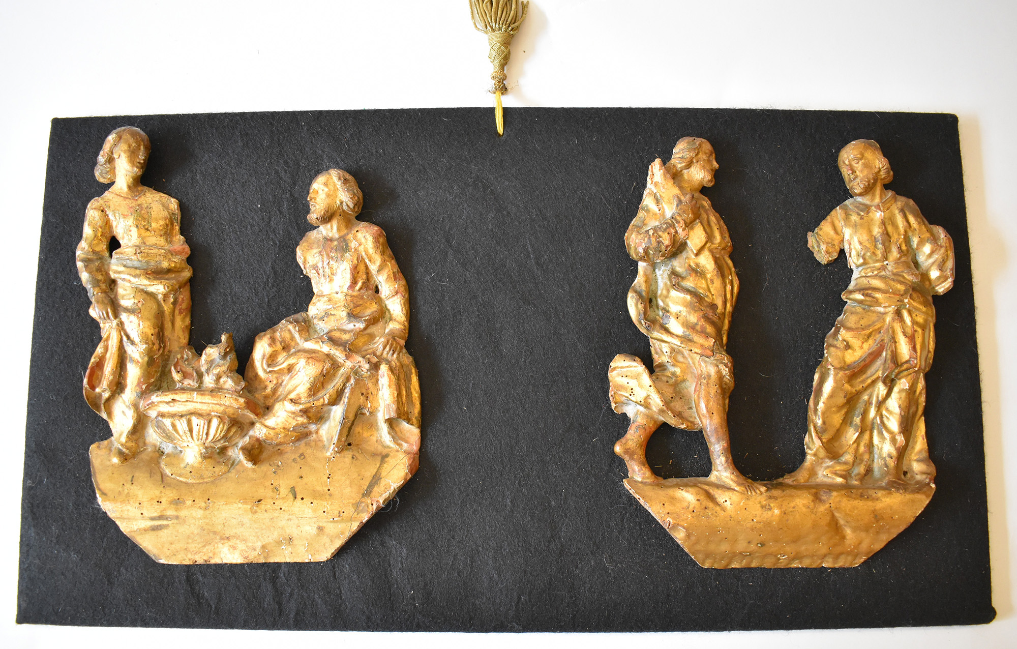 pannello con sculture in legno dorato applicate sec.XVIII 38 5x71 cm