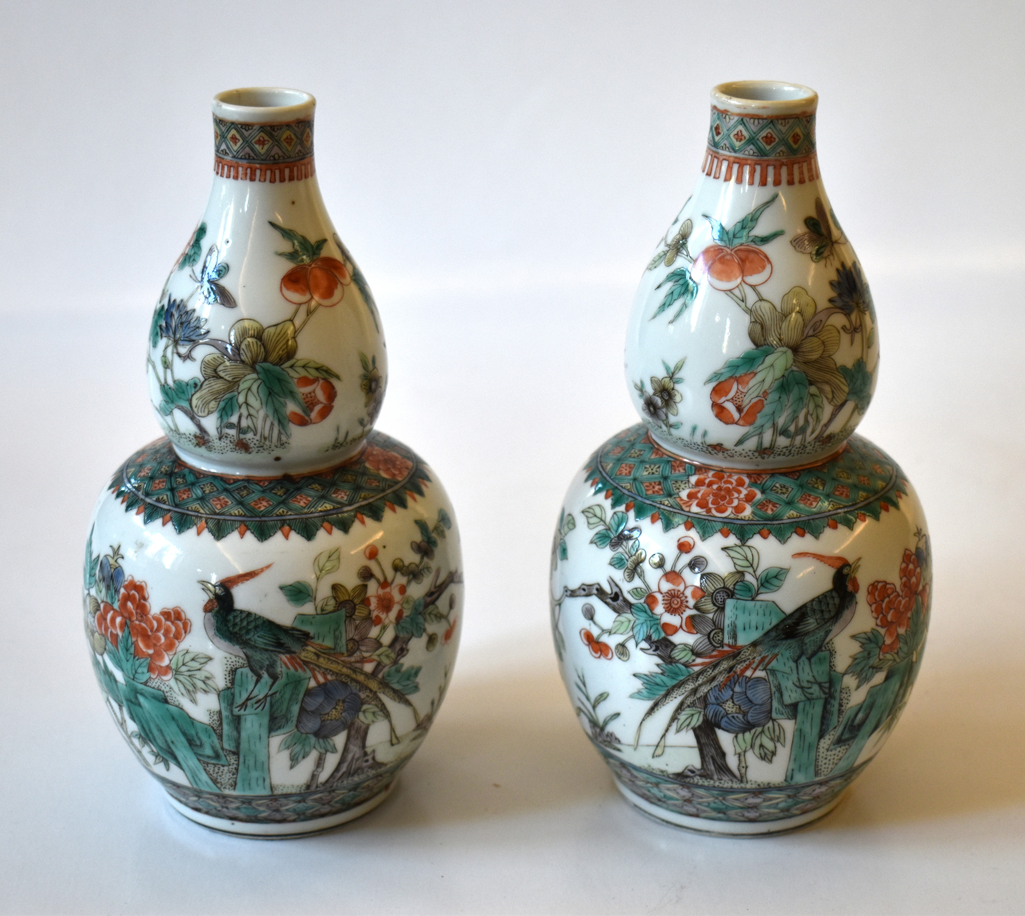 Cina coppia di vasi a zucca nei toni della famiglia verde