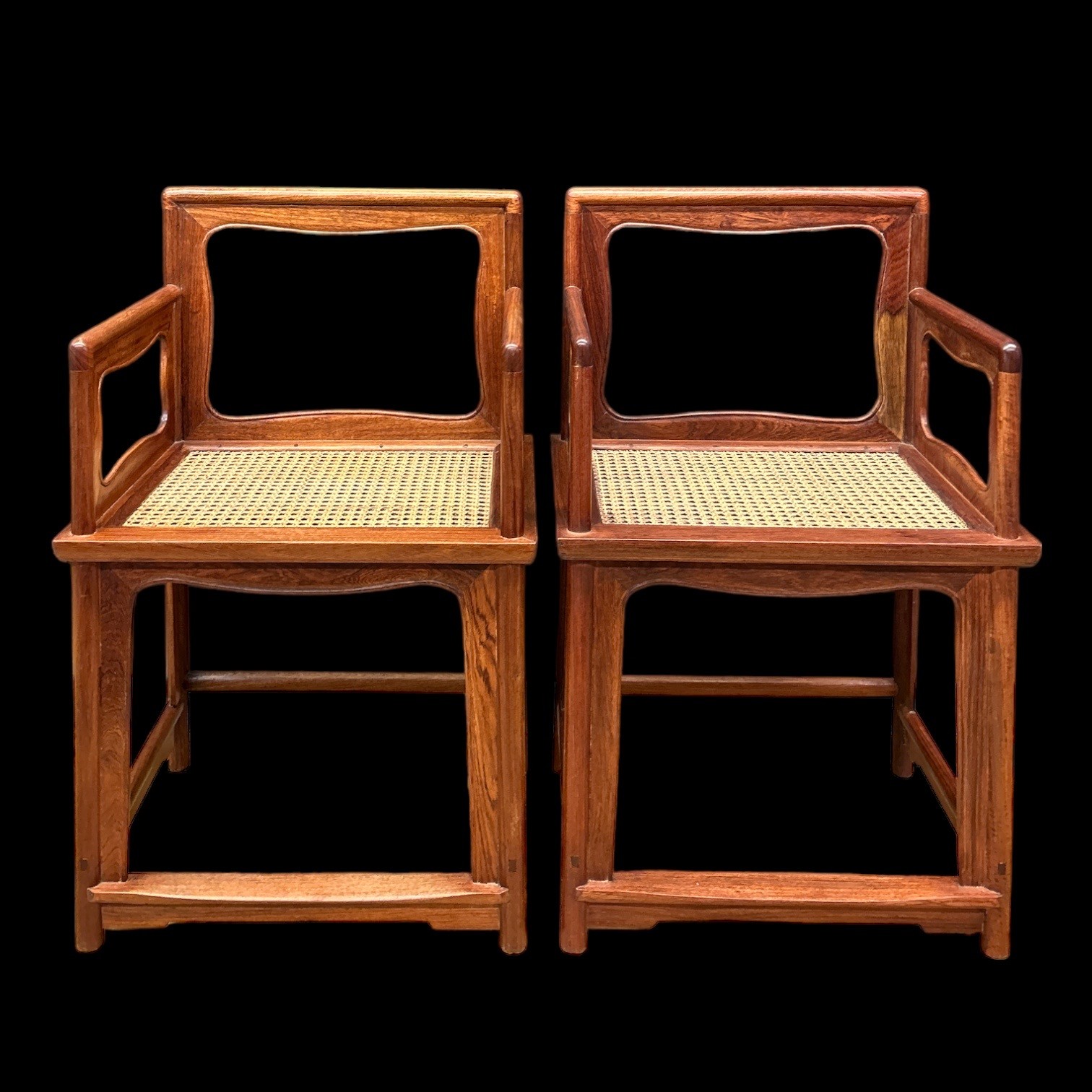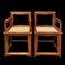Cina coppia di poltrone in legno duro con seduta in paglia di Vienna