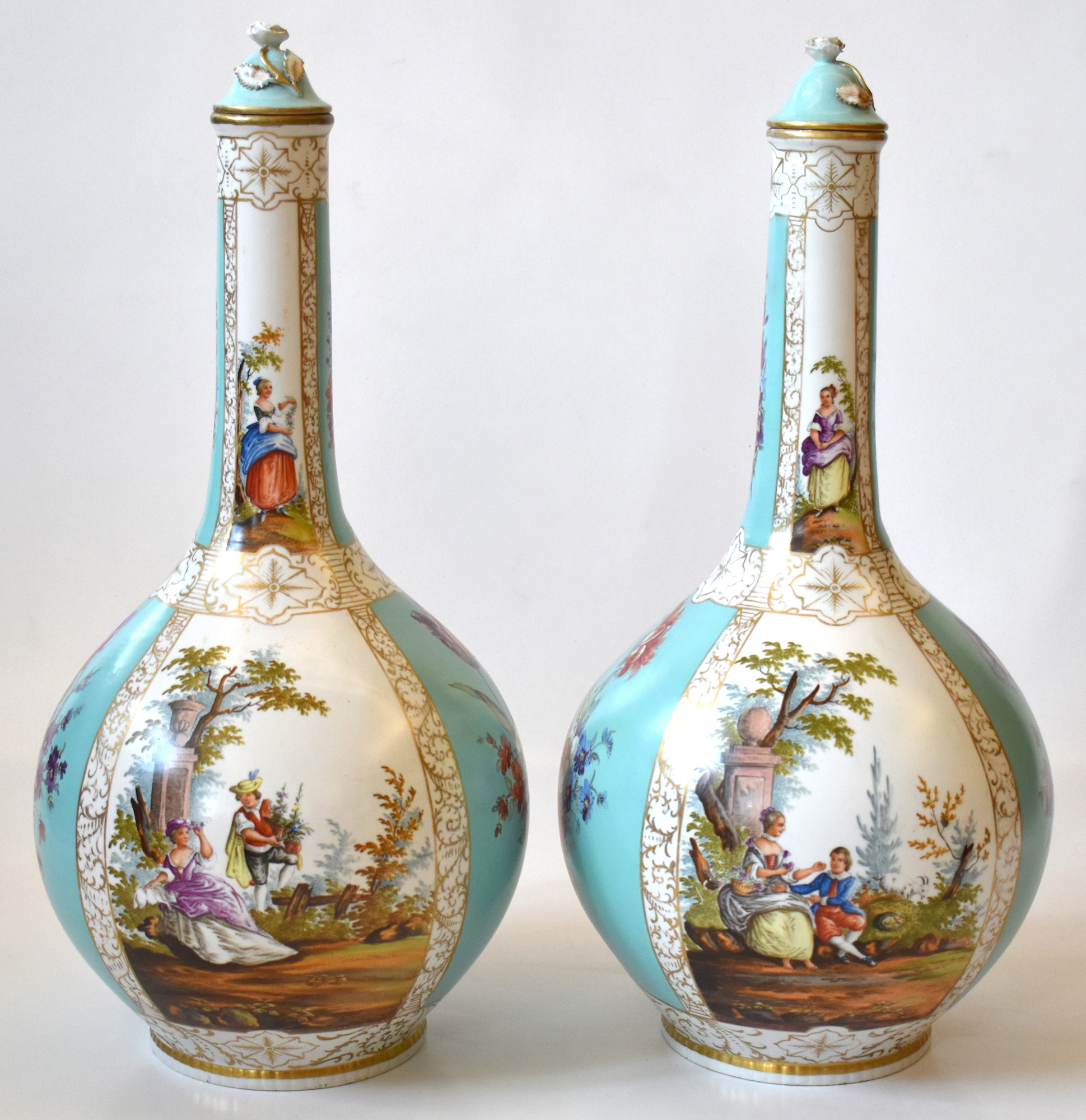 coppia di grandi vasi a bottiglia dipinti sec. XIX
